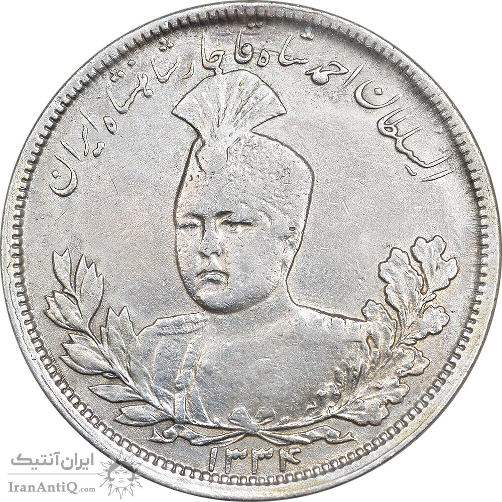 سکه 5000 دینار 1334 تصویری - EF45 - احمد شاه
