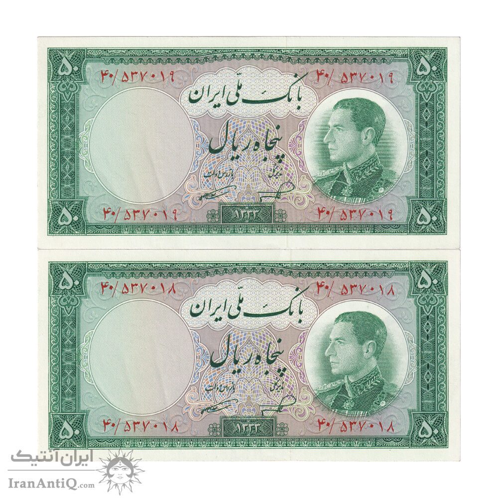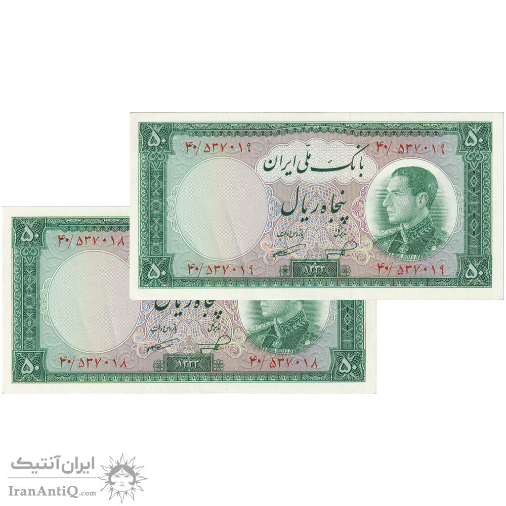 اسکناس 50 ریال 1333 - جفت - AU58 - محمد رضا شاه