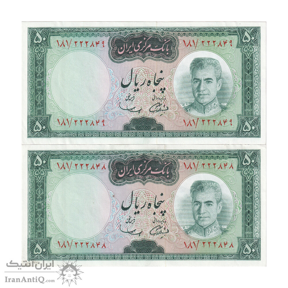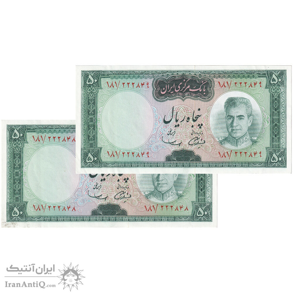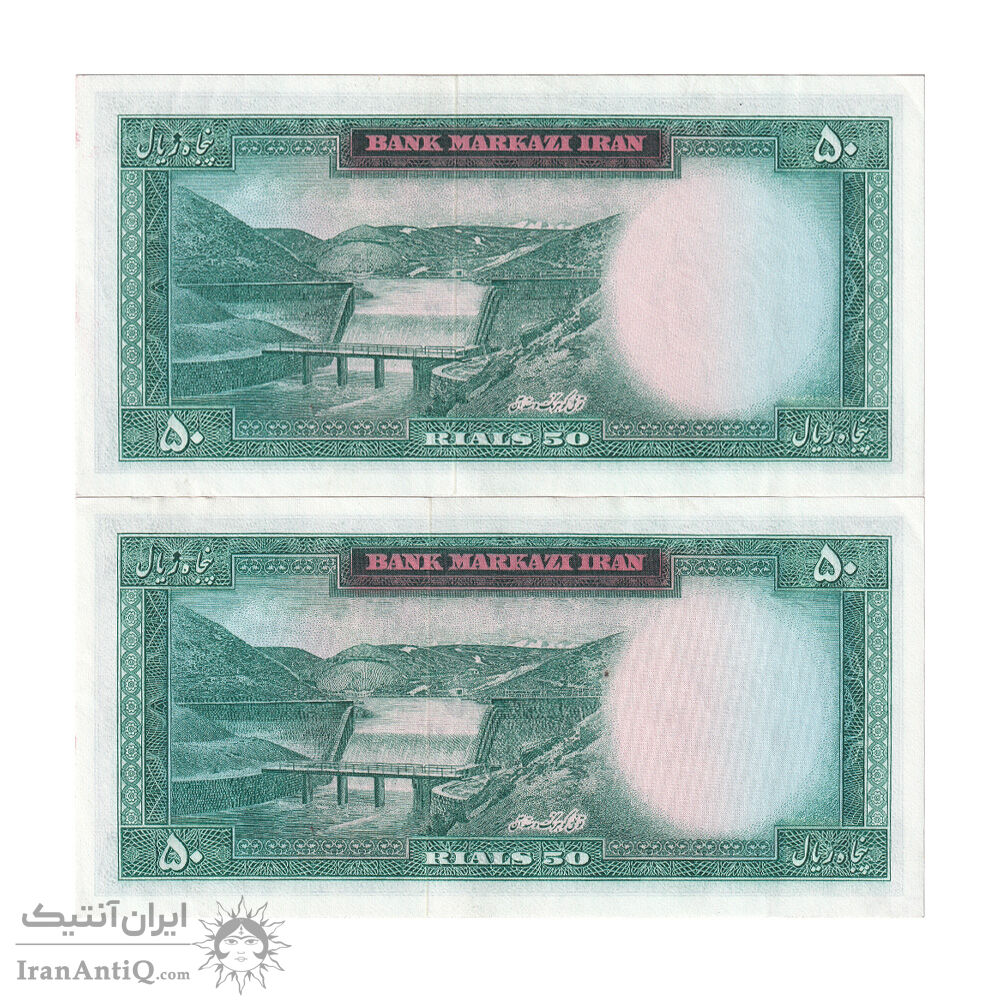اسکناس 50 ریال (آموزگار - سمیعی) - جفت - AU55 - محمد رضا شاه