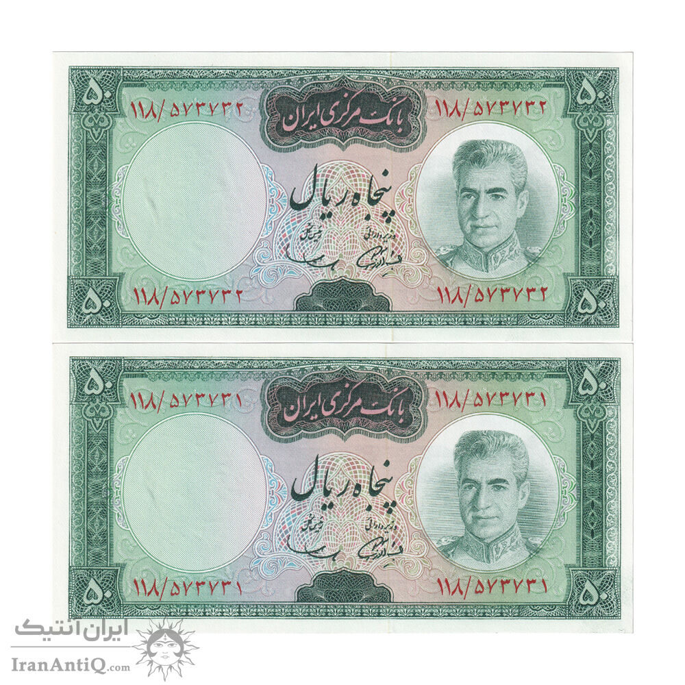 اسکناس 50 ریال (آموزگار - سمیعی) - جفت - UNC63 - محمد رضا شاه