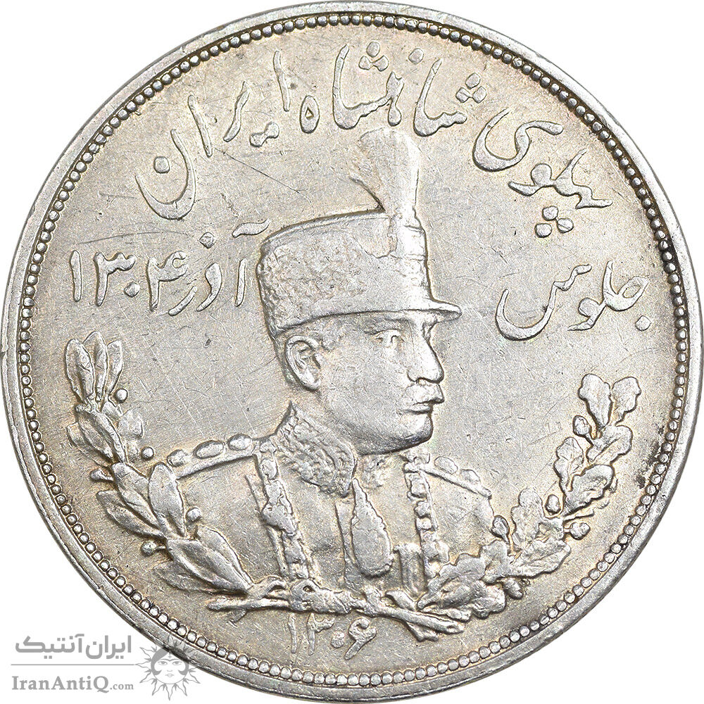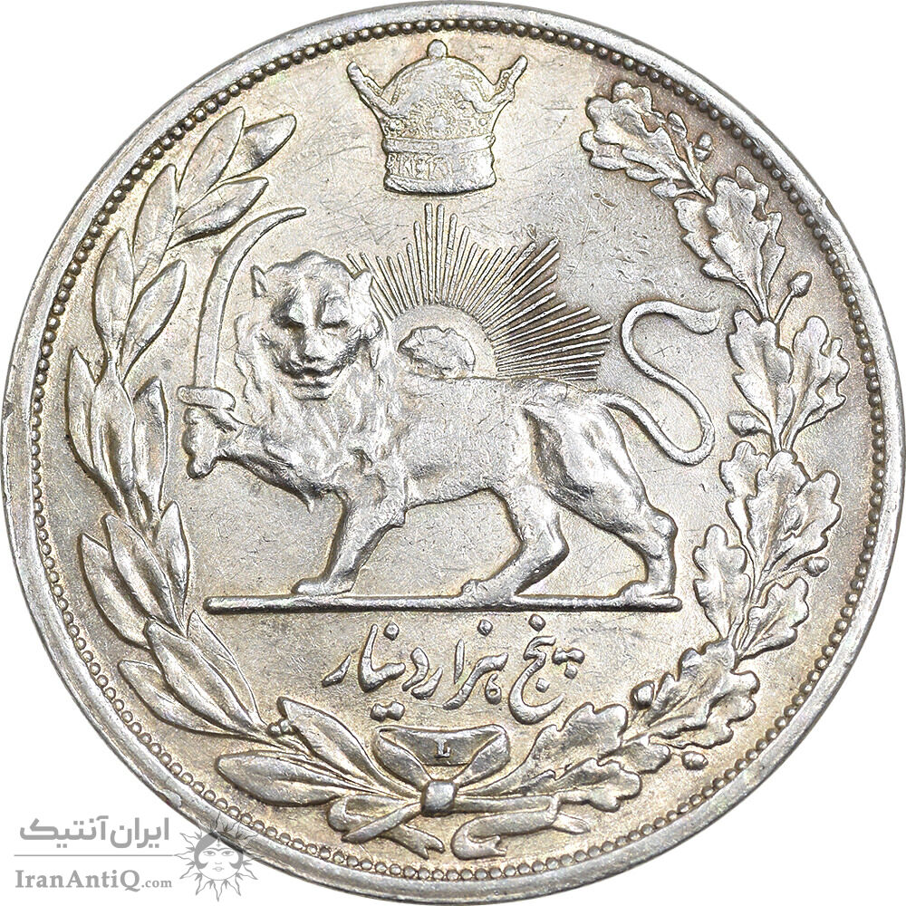 سکه 5000 دینار 1306 تصویری - ضرب لنینگراد - AU53 - رضا شاه