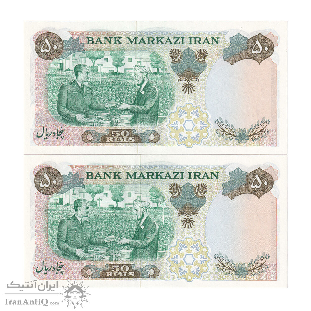اسکناس 50 ریال 1350 (آموزگار - سمیعی) - جفت - UNC63 - محمد رضا شاه