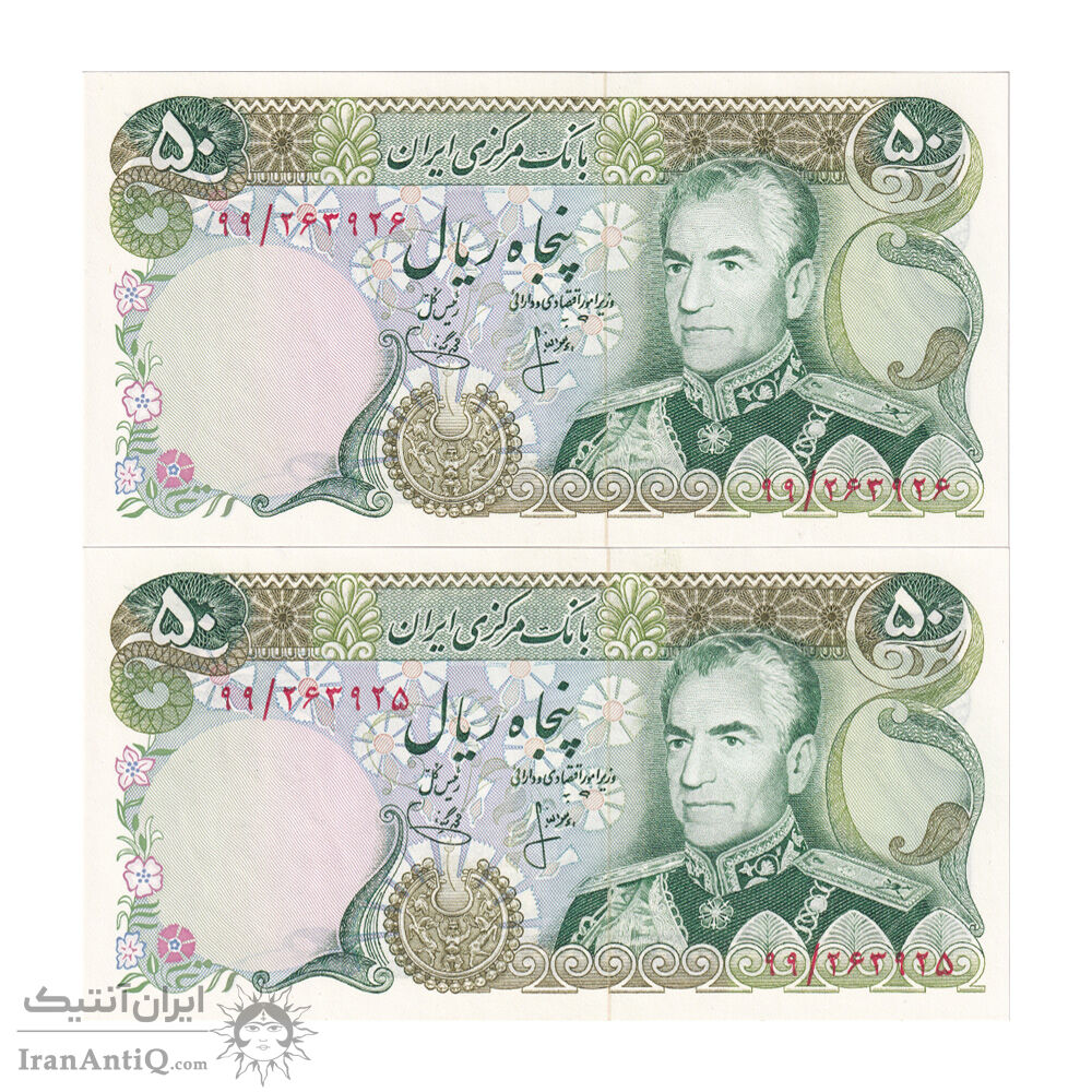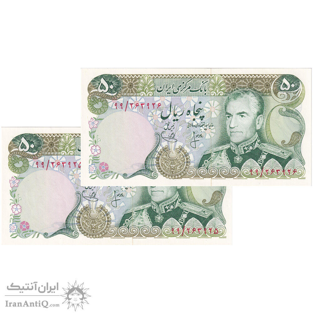 اسکناس 50 ریال (انصاری - یگانه) - جفت - UNC64 - محمد رضا شاه