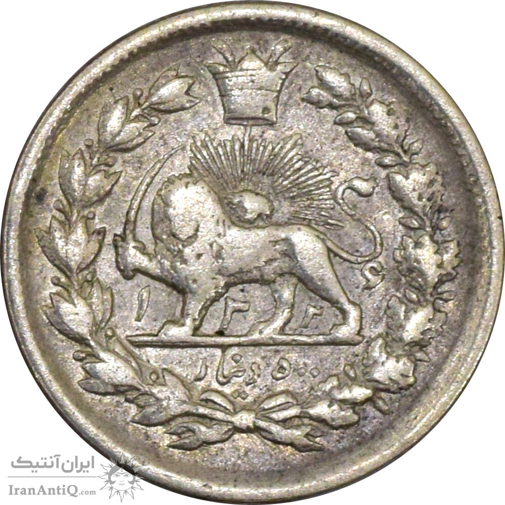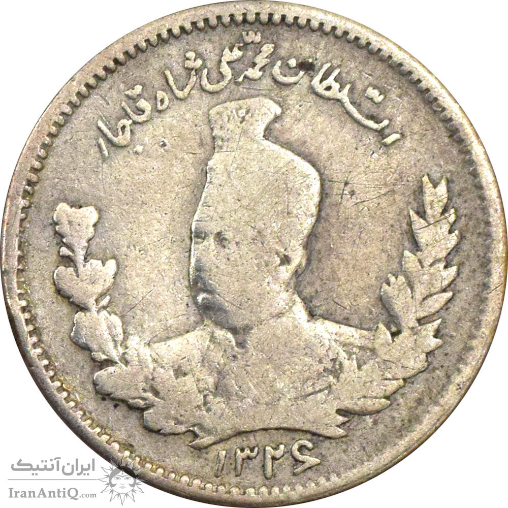 سکه 500 دینار 1326 تصویری - دو تاریخ - VF25 - محمد علی شاه