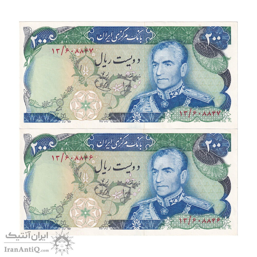 اسکناس 200 ریال (انصاری - یگانه) - جفت - UNC63 - محمد رضا شاه