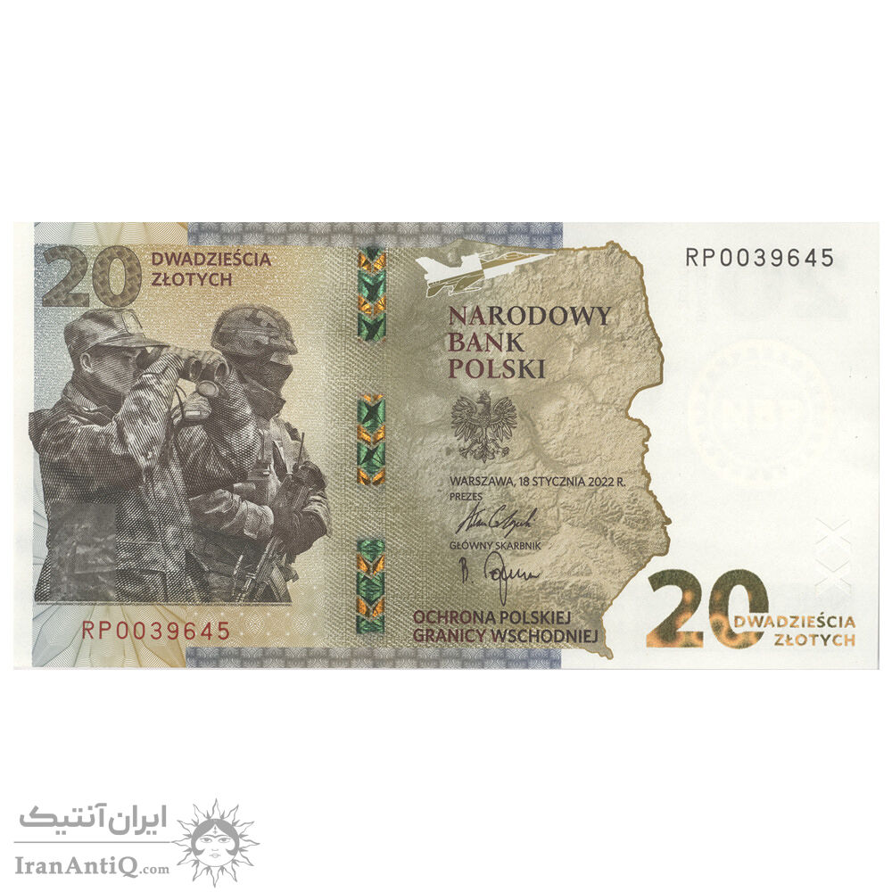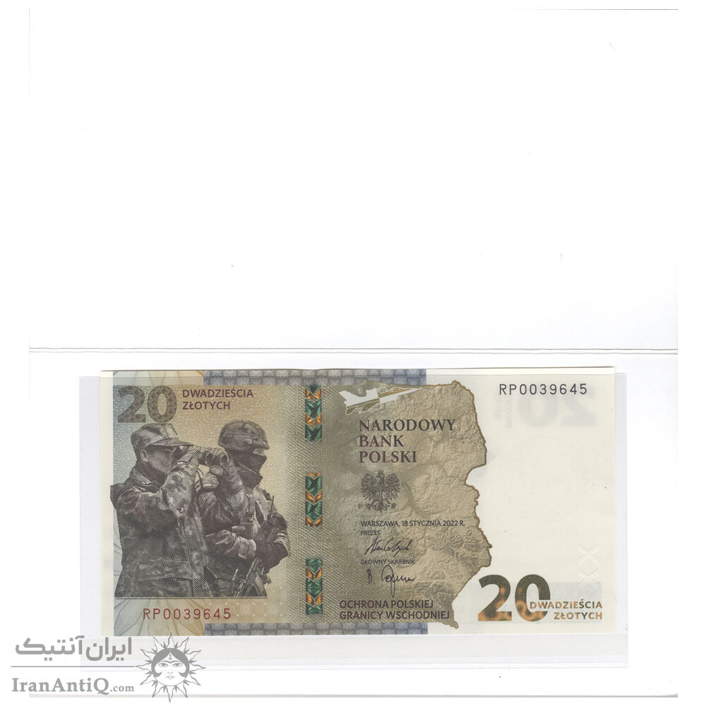 اسکناس 20 زلوتی 2022 جمهوری سوم - حفاظت از مرز شرقی - تک - UNC64 - لهستان