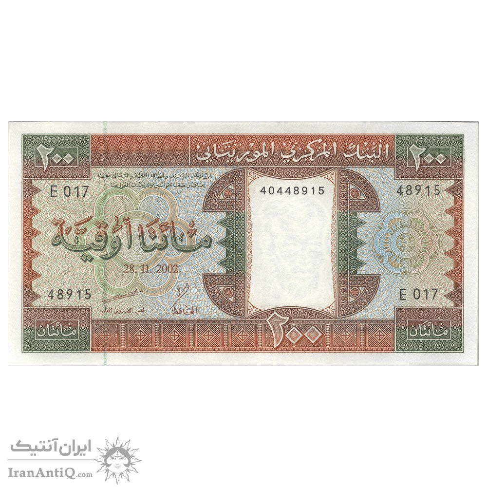 اسکناس 200 اوقیه 2002 جمهوری اسلامی - تک - UNC62 - موریتانی