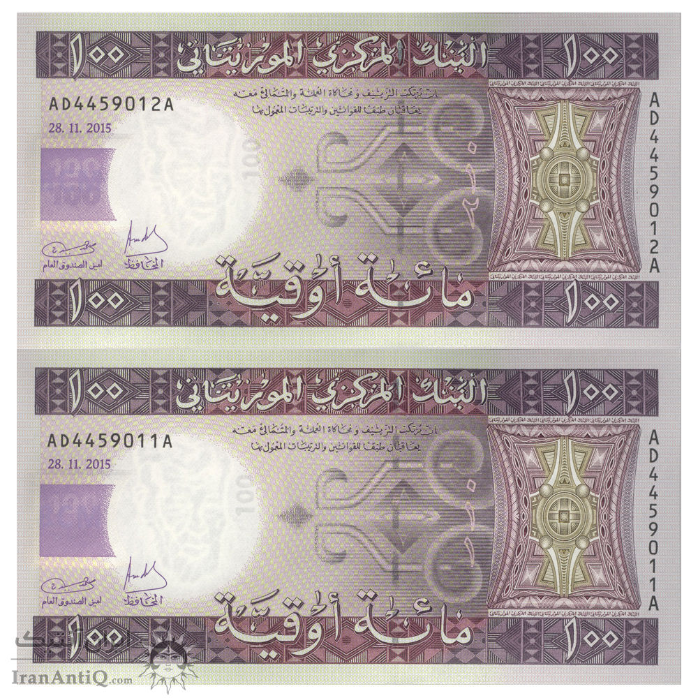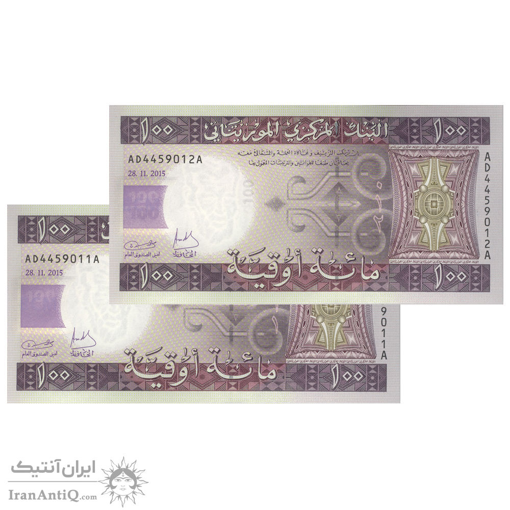 اسکناس 100 اوقیه 2015 جمهوری اسلامی - جفت - UNC63 - موریتانی
