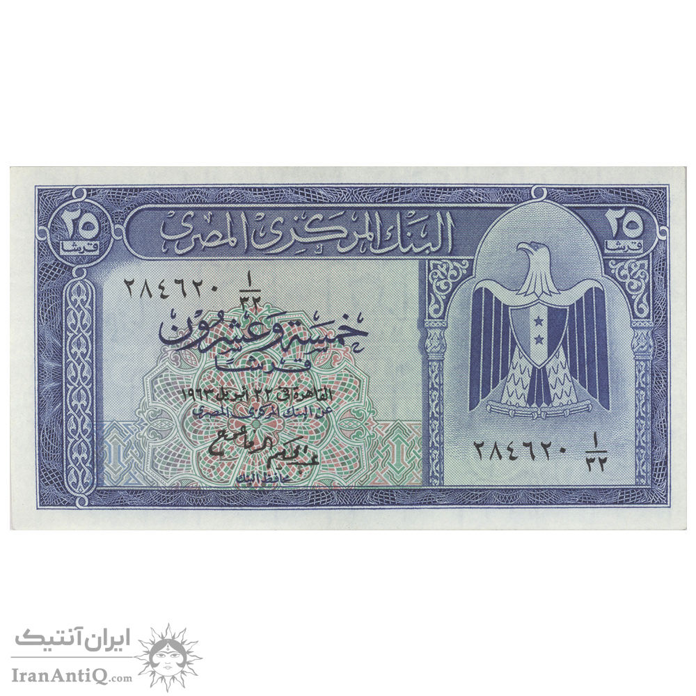 اسکناس 25 پیاستر 1963 جمهوری متحده عربی - تک - UNC65 - مصر