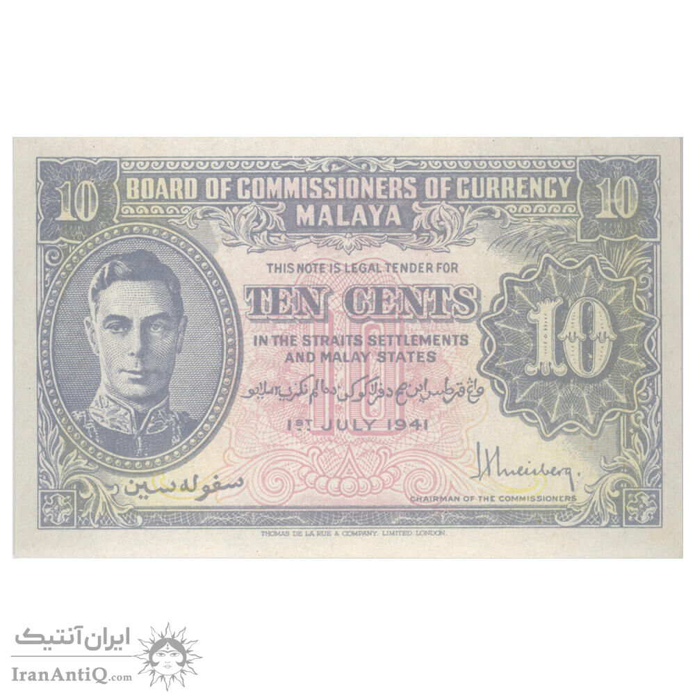 اسکناس 10 سنت 1941 جرج ششم - تک - UNC61 - مالزی