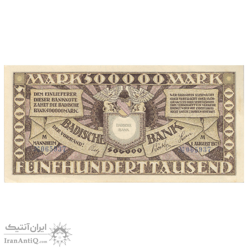 اسکناس 500000 مارک 1923 جمهوری وایمار - تک - UNC64 - آلمان