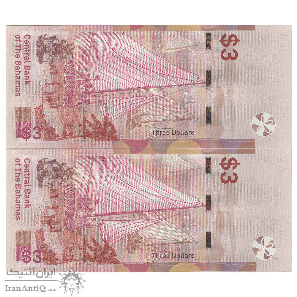 اسکناس 3 دلار 2019 الیزابت دوم - جفت - UNC62 - باهاما