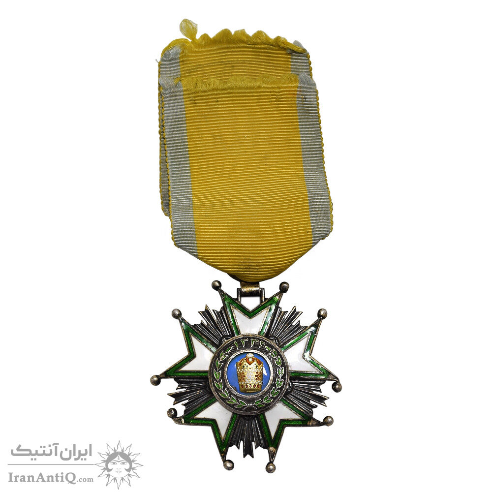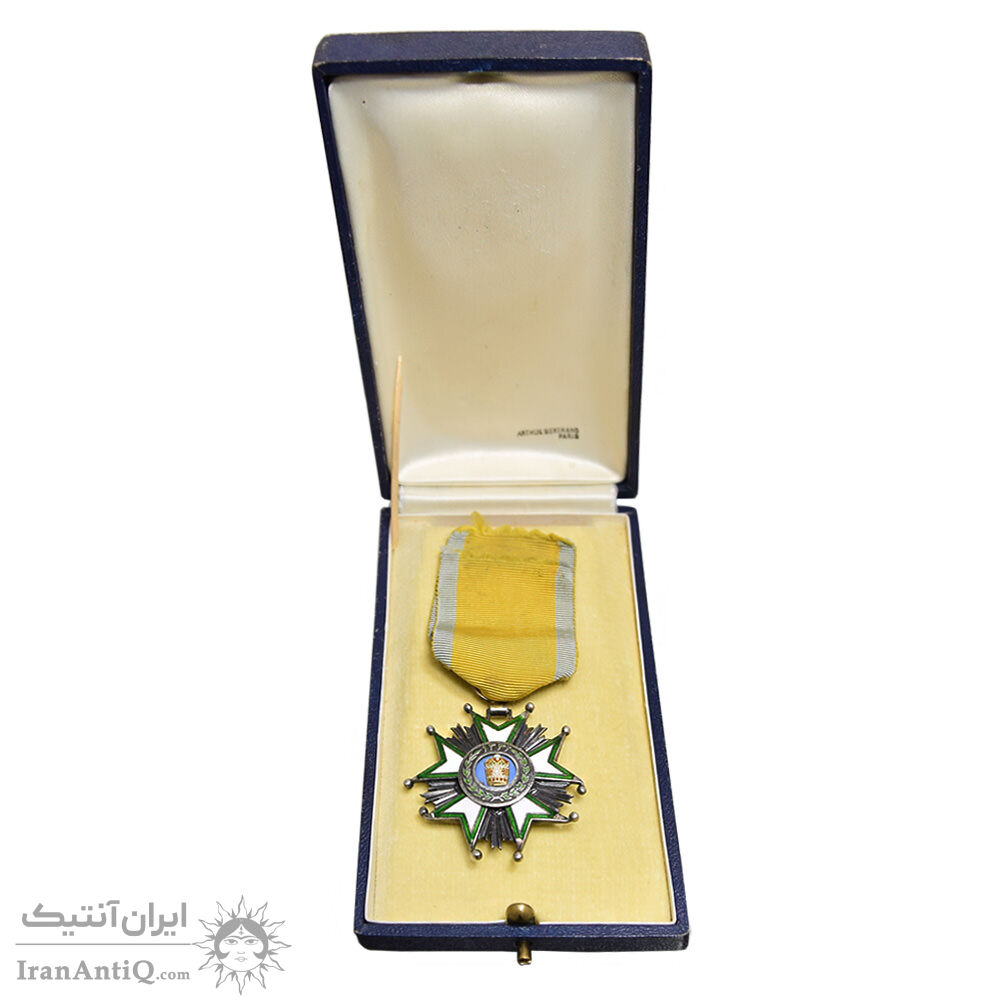 نشان تاج درجه پنج 1332 - با جعبه و روبان فابریک - EF - احمد شاه