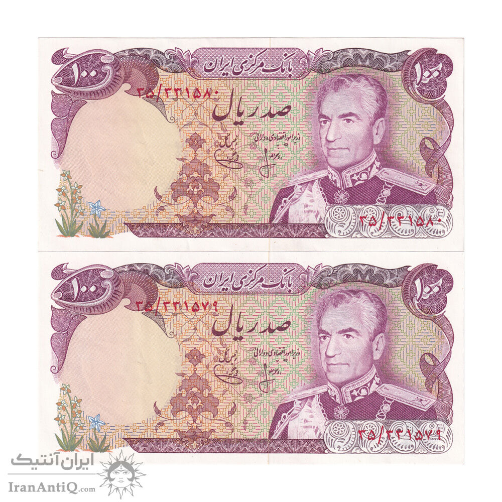 اسکناس 100 ریال (انصاری - یگانه) - جفت - UNC60 - محمد رضا شاه