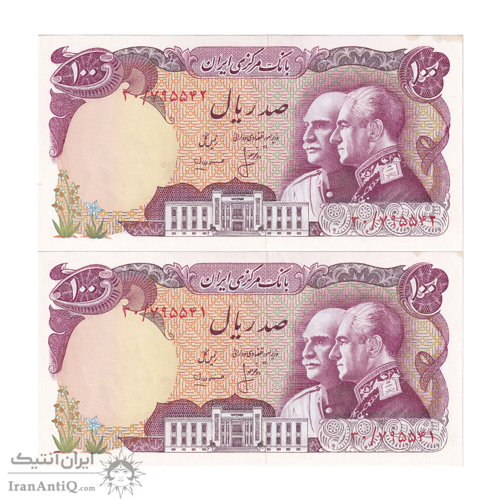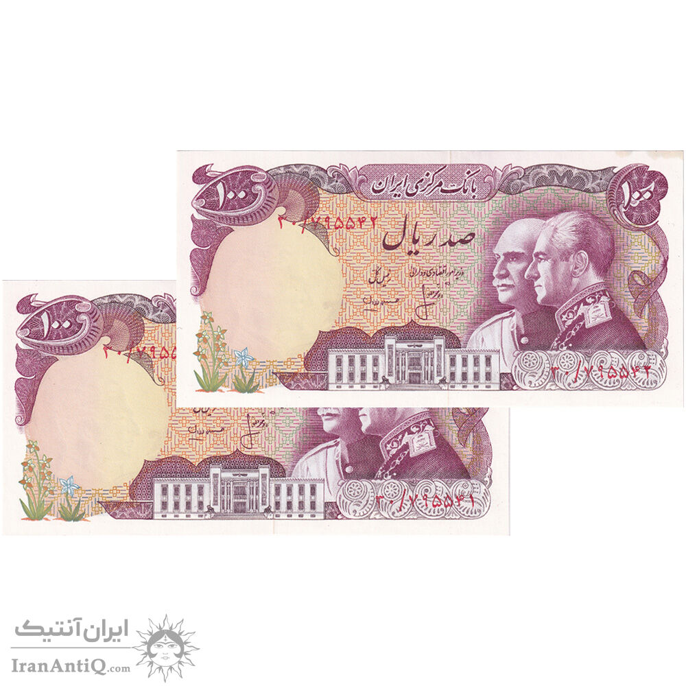 اسکناس 100 ریال پنجاهمین سال - جفت - UNC62 - محمد رضا شاه