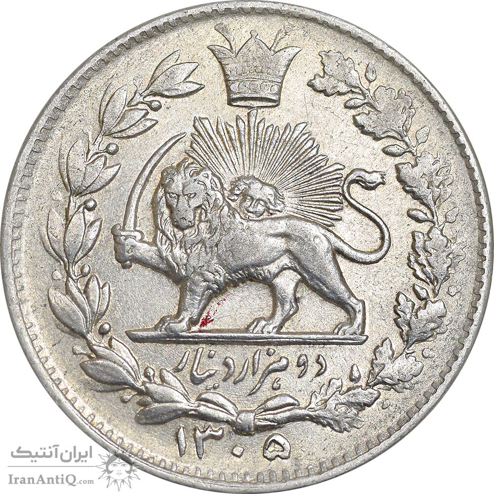Iran 2000 dinars 1305 coin - AU55 - reza shah pahlavi