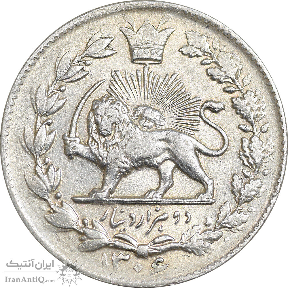 سکه 2000 دینار 1306 خطی - AU50 - رضا شاه