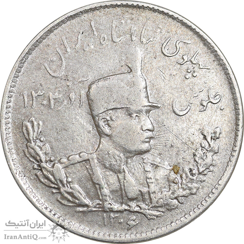سکه 2000 دینار 1306 تصویری - ضرب تهران - ارور چرخش 45 درجه - EF40 - رضا شاه