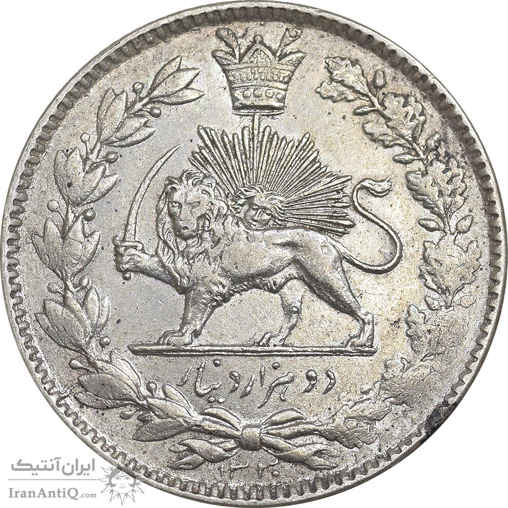 iran 2000 dinars 1330 coin - AU55 - ahmad shah