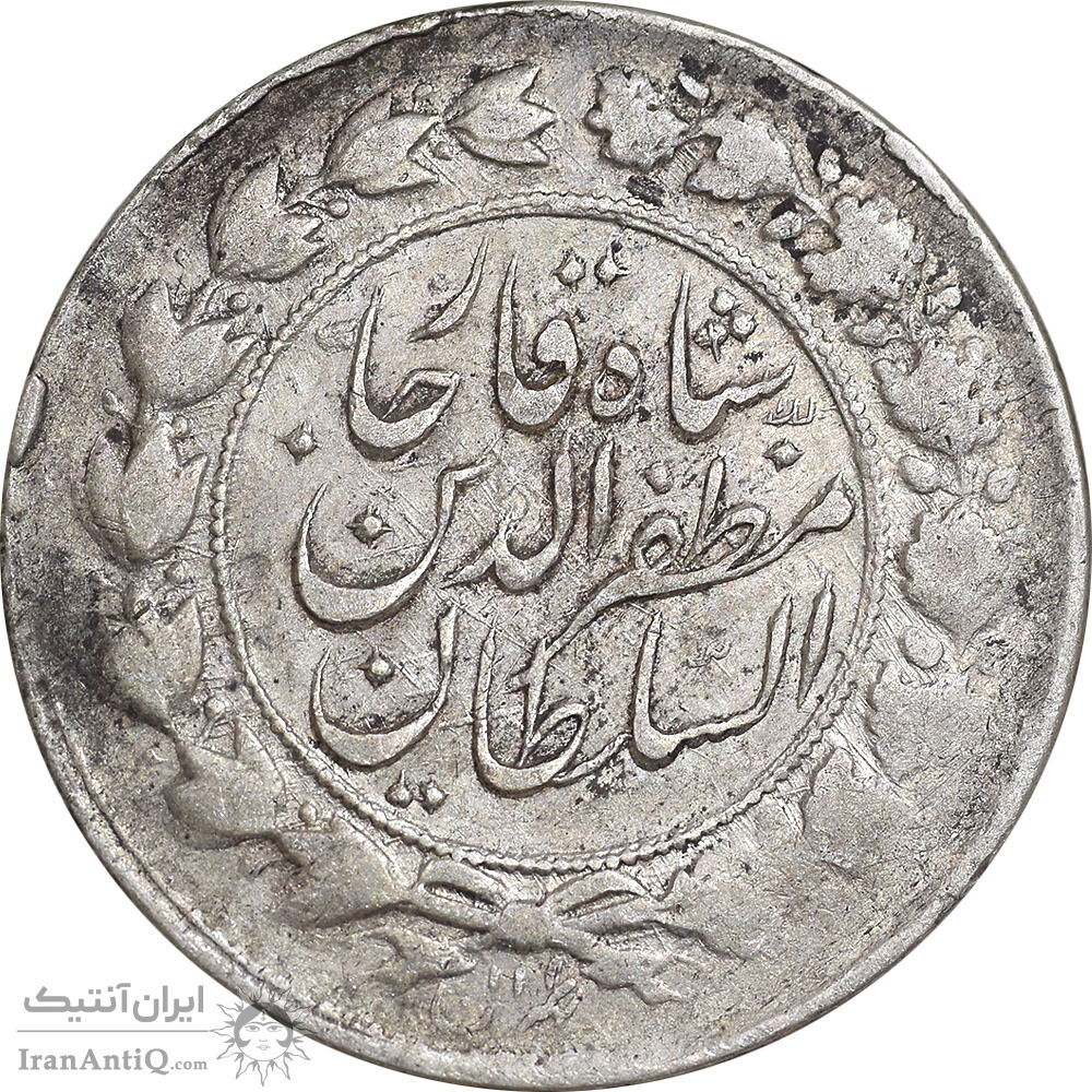 سکه 2000 دینار 1314 خطی - یک تاج - VF30 - مظفرالدین شاه