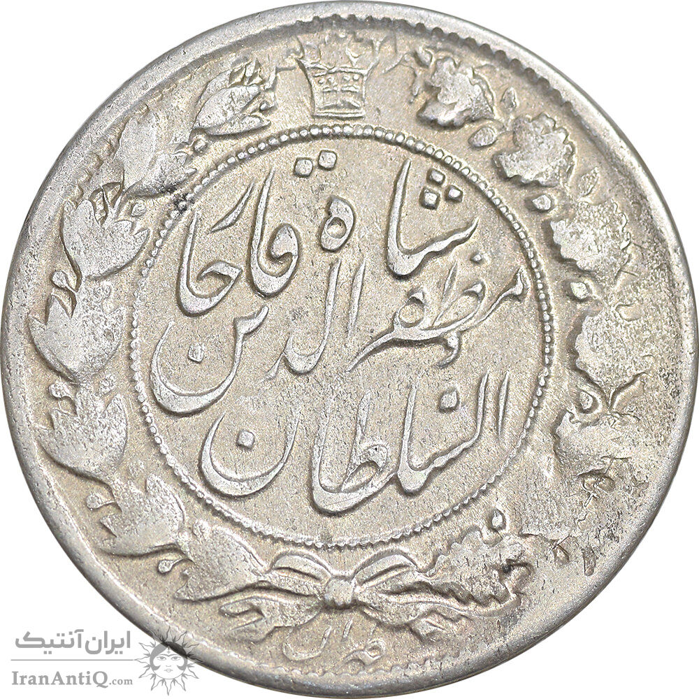 سکه 2 قران 1321 - 13201 ارور تاریخ - AU50 - مظفرالدین شاه