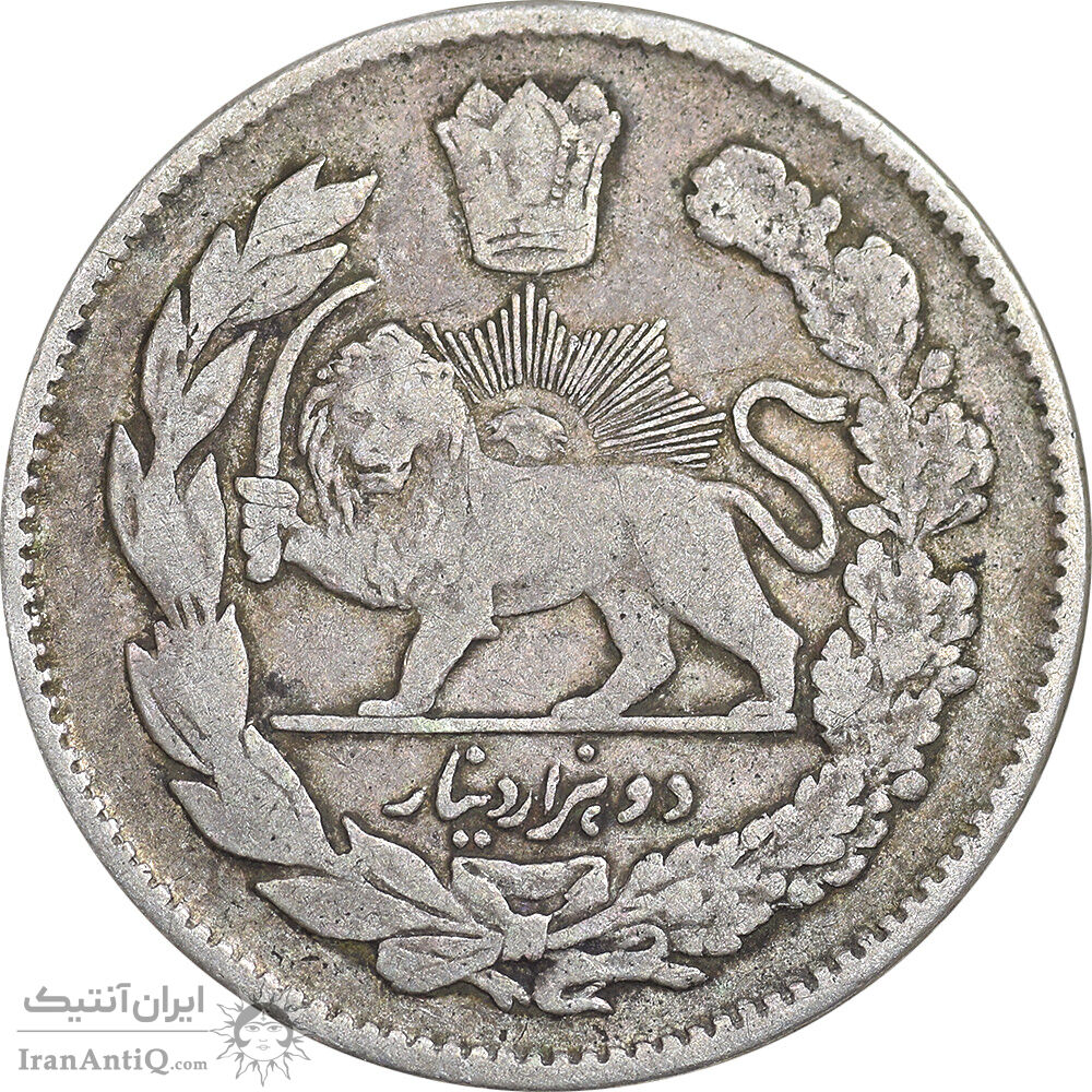 سکه 2000 دینار 1323 تصویری - VF30 - مظفرالدین شاه