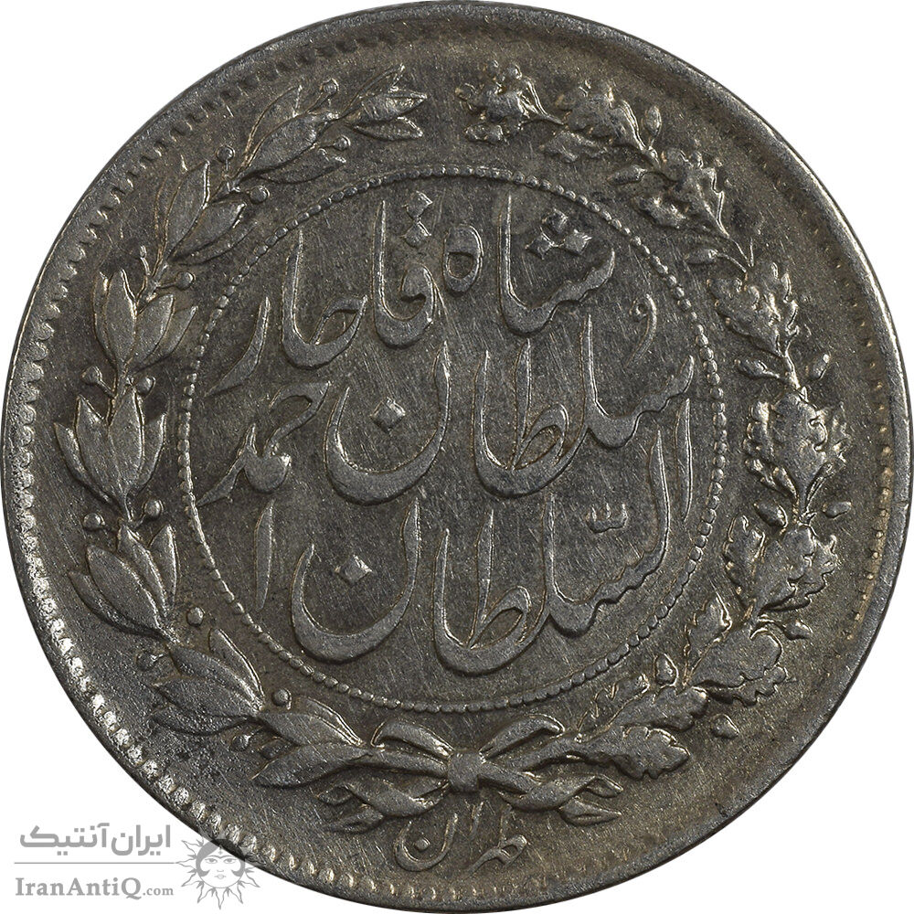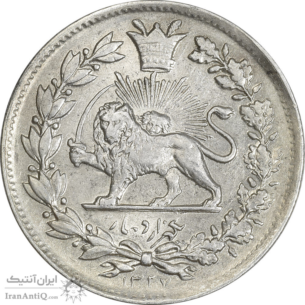 iran 1000 dinars 1327 coin - AU58 - ahmad shah