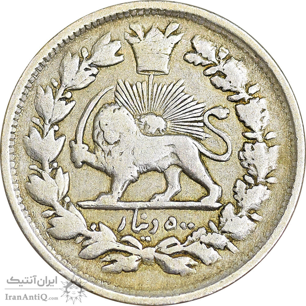 iran 500 dinars 1307 coin - VF35 - naser aldin shah