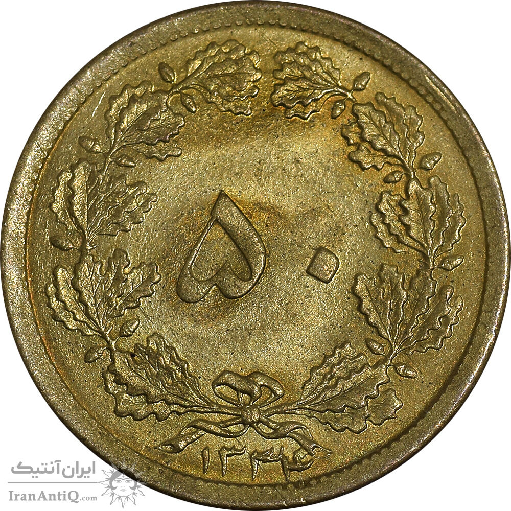 سکه 50 دینار 1334 برنز - MS63 - محمد رضا شاه