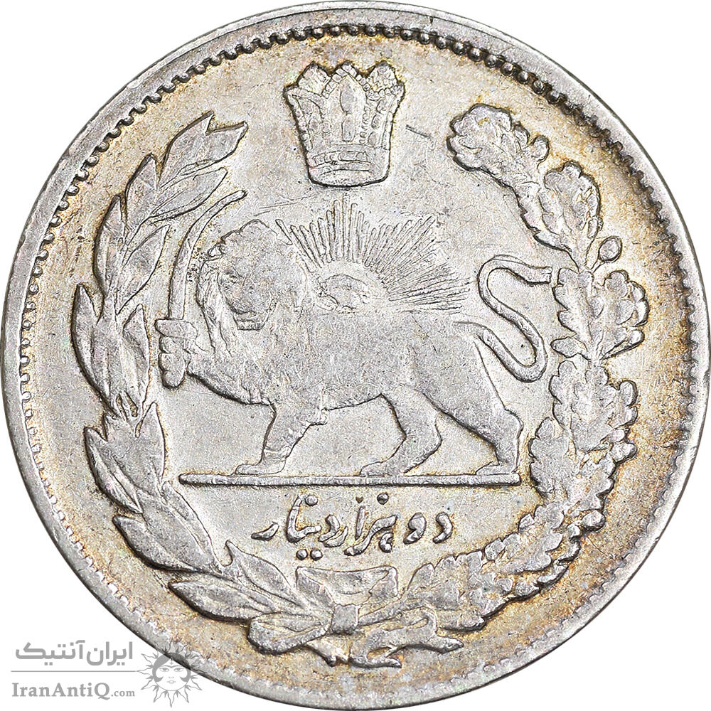 سکه 2000 دینار 1323 تصویری - ارور 2 تاریخ مکرر - AU50 - مظفرالدین شاه