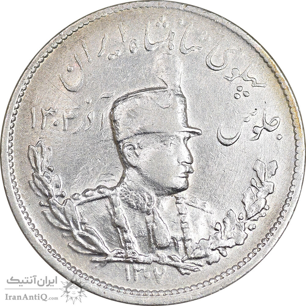 سکه 2000 دینار 1307 تصویری - AU50 - رضا شاه