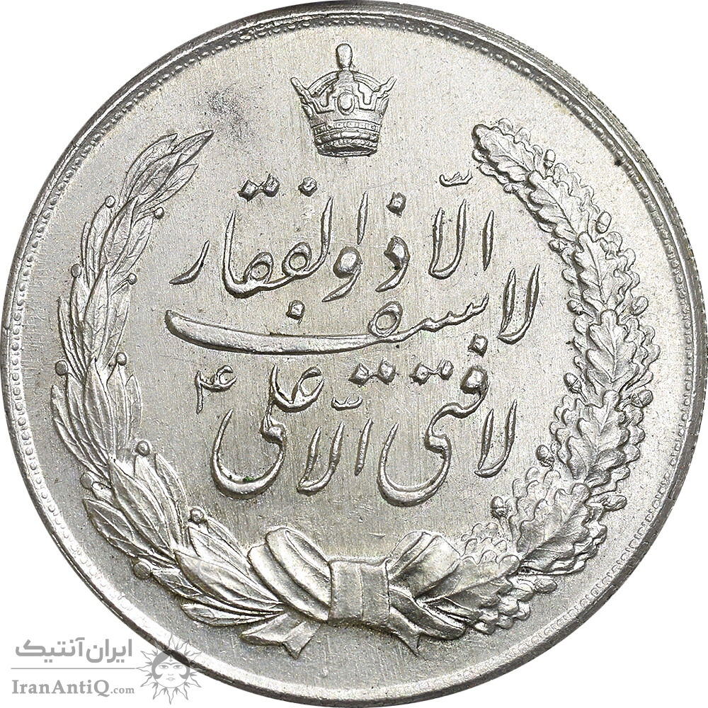مدال نقره نوروز 1334 - لافتی الا علی - MS63 - محمد رضا شاه