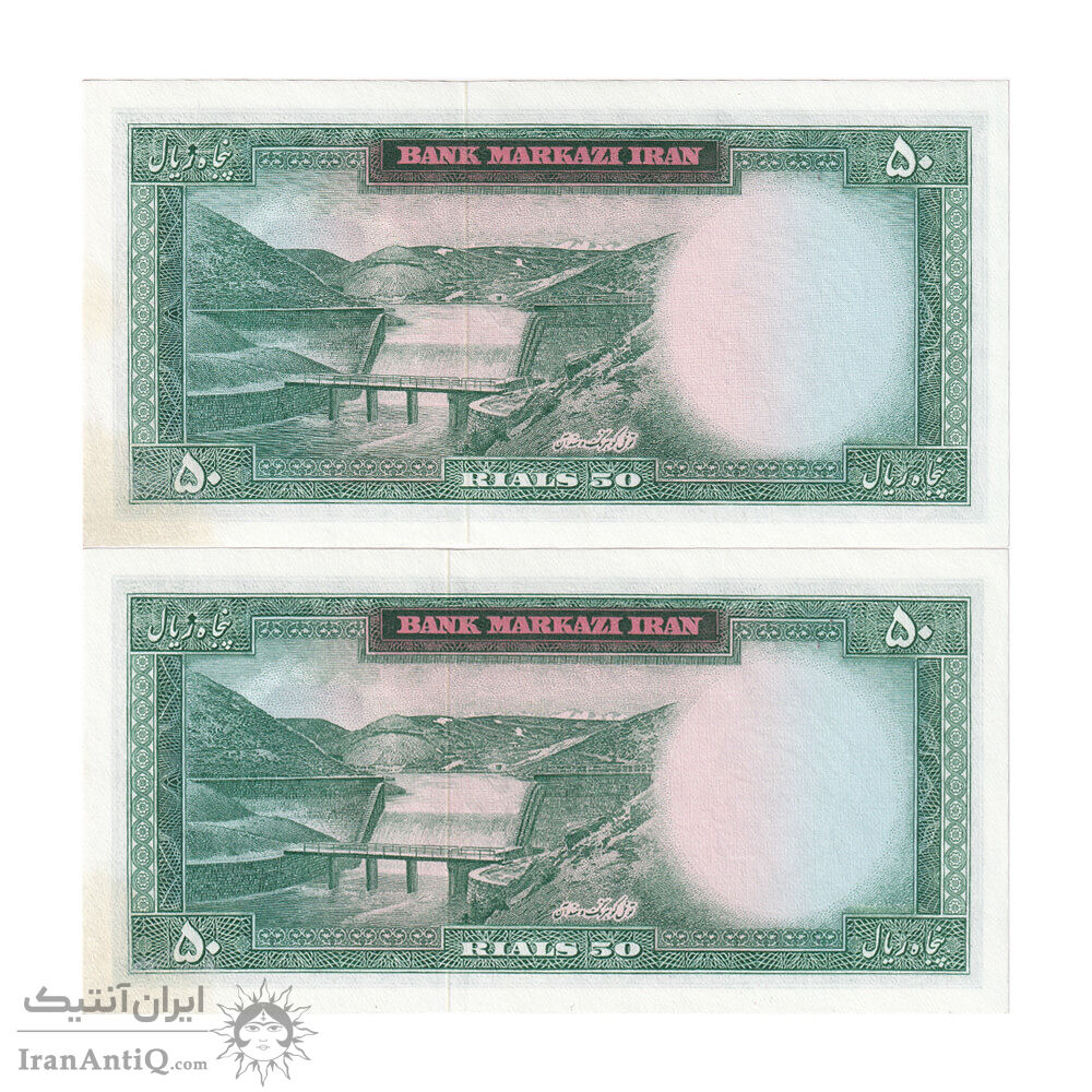 اسکناس 50 ریال 1341 - تاریخ کوچک - جفت - UNC63 - محمد رضا شاه