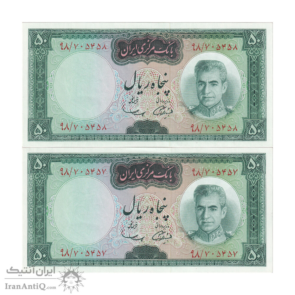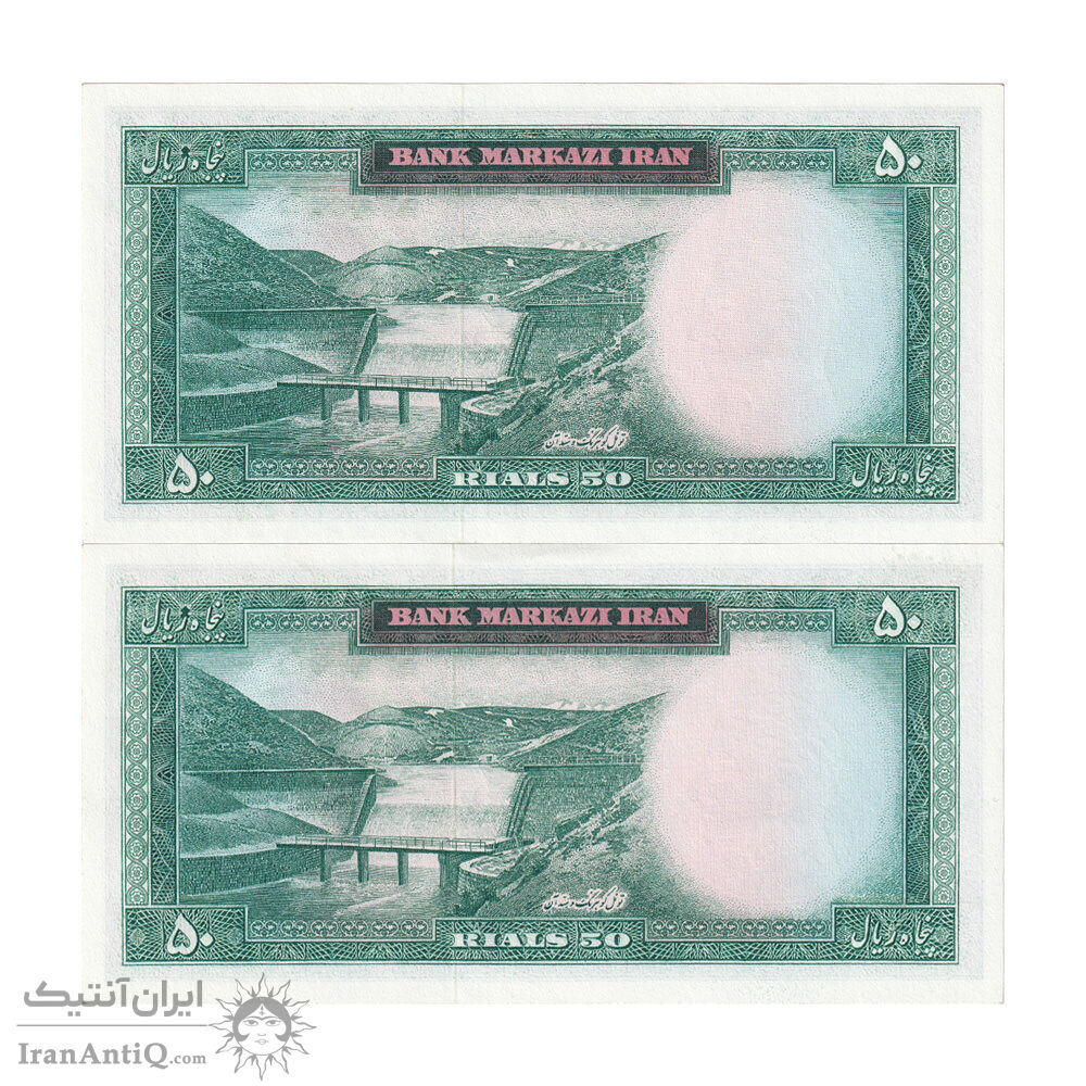اسکناس 50 ریال (آموزگار - سمیعی) - جفت - UNC62 - محمد رضا شاه
