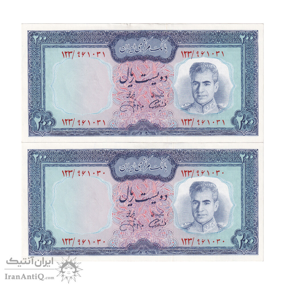 اسکناس 200 ریال (آموزگار - جهانشاهی) - جفت - UNC - محمد رضا شاه