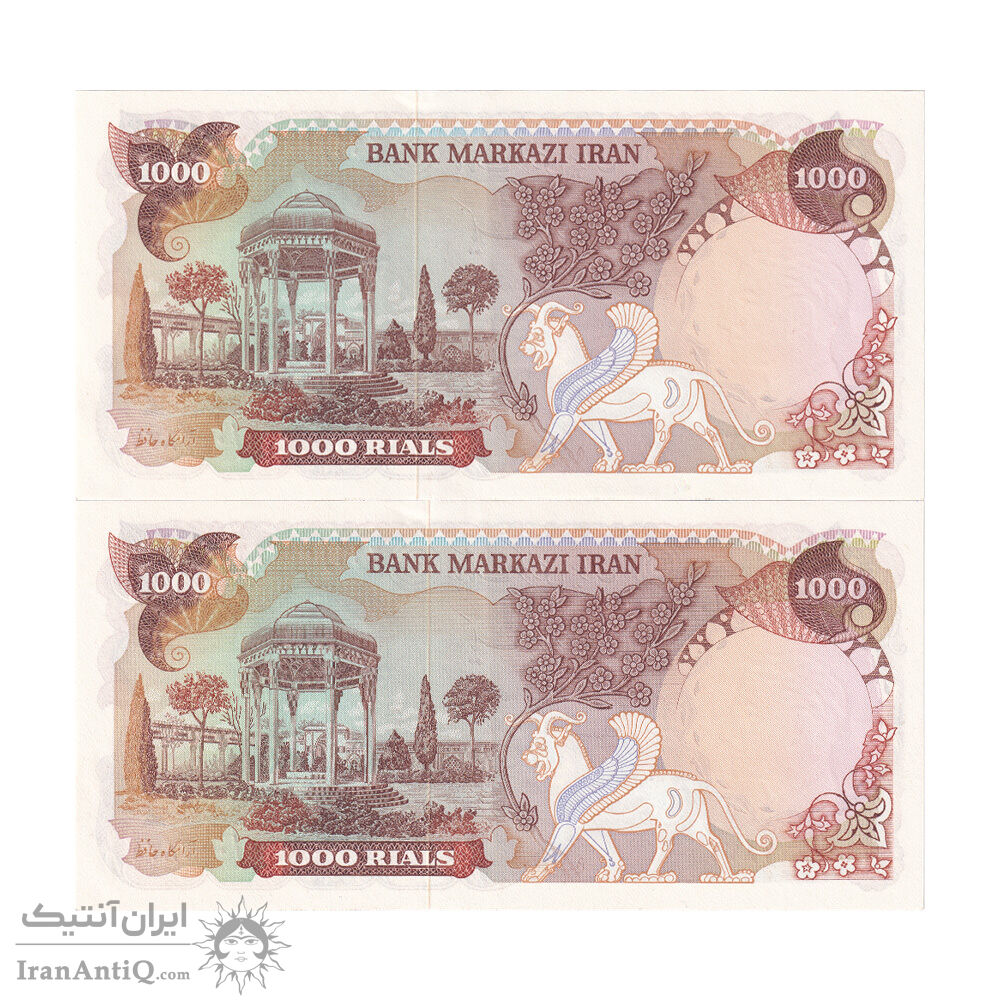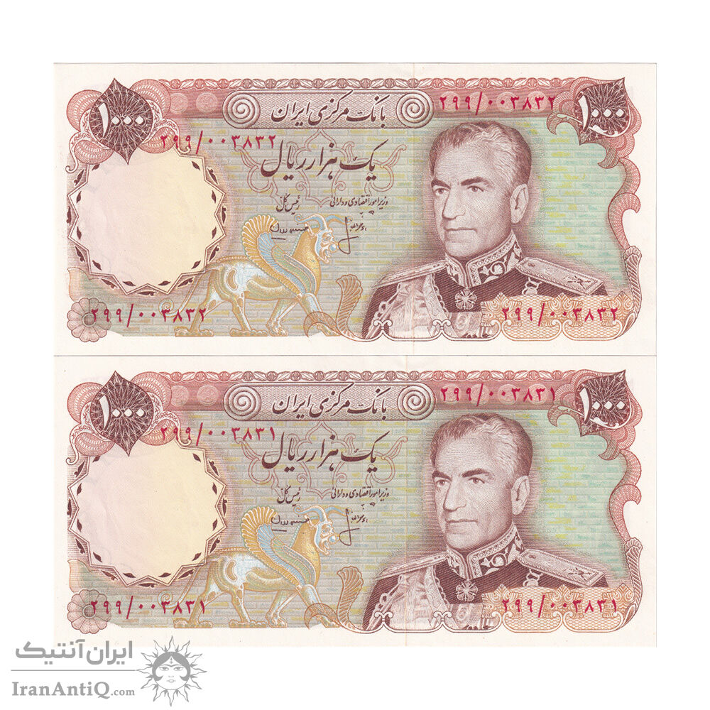 اسکناس 1000 ریال (انصاری - مهران) - جفت - AU55 - محمد رضا شاه