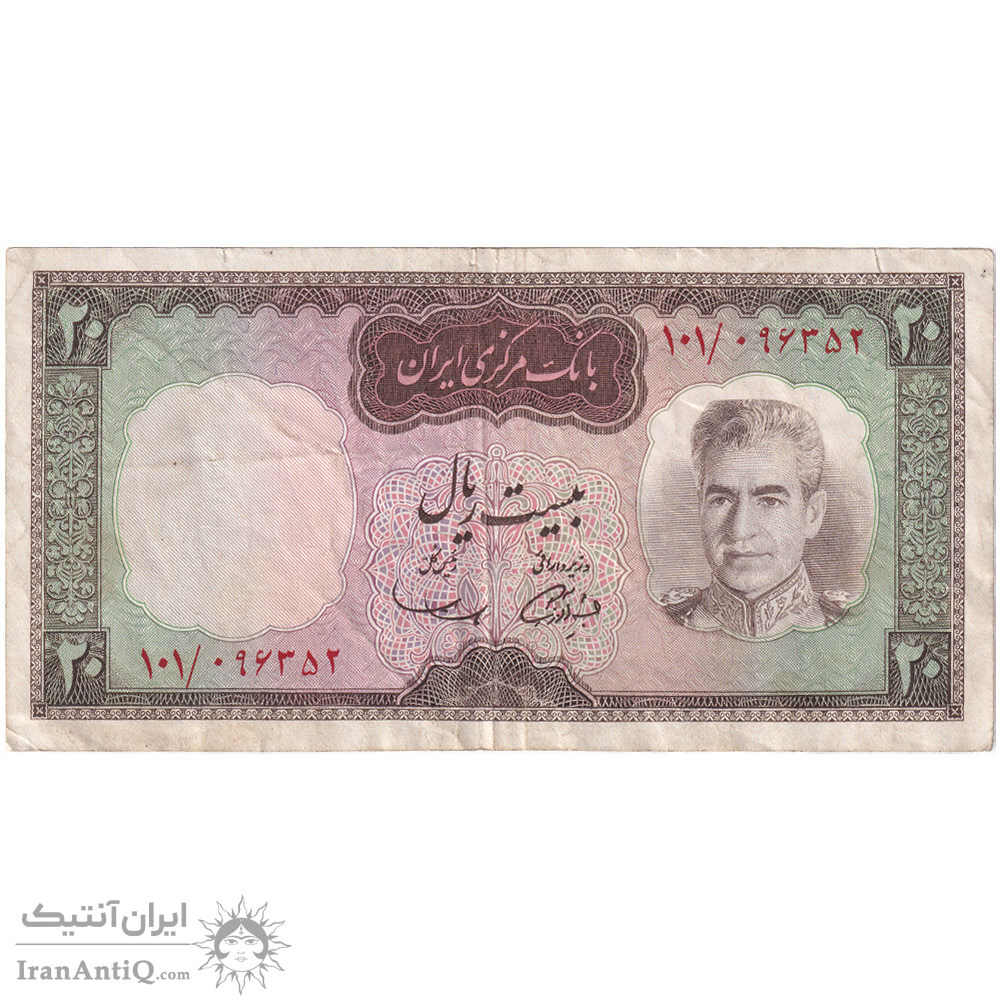 اسکناس 20 ریال (آموزگار - سمیعی) - تک - VF35 - محمد رضا شاه