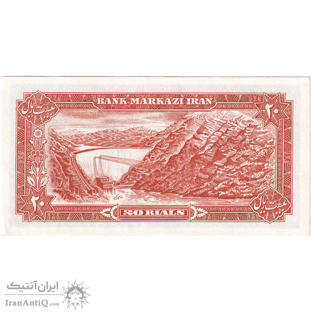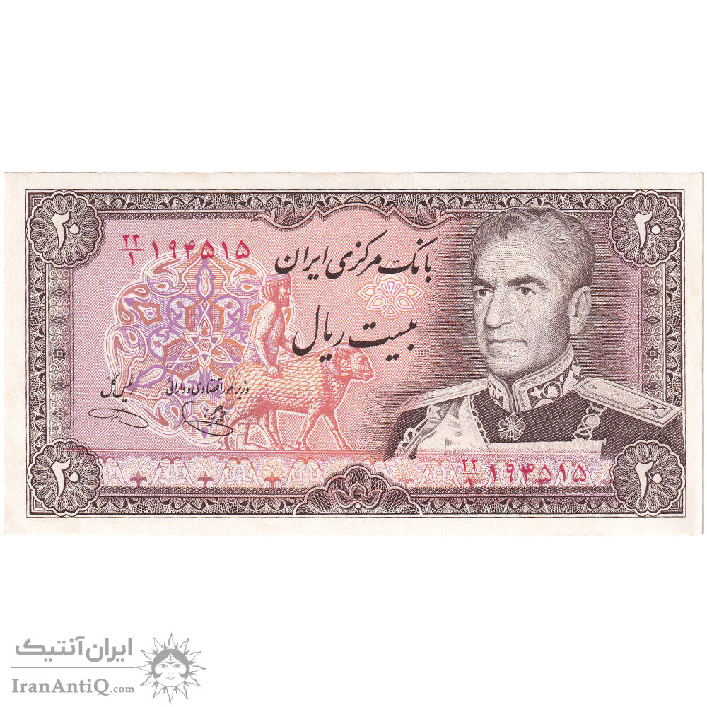 اسکناس 20 ریال (یگانه - خوش کیش) - تک - UNC62 - محمد رضا شاه
