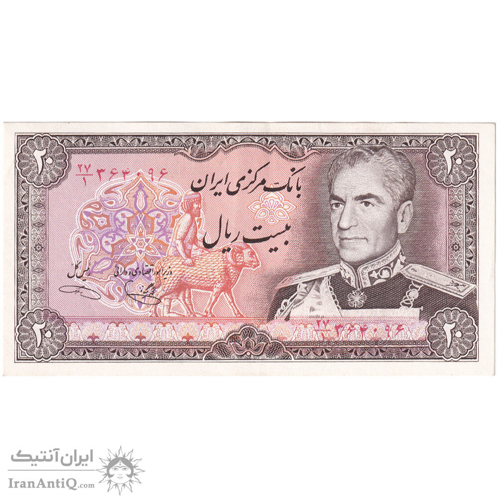 mohammad reza shah 20 rials (yegane - khoshkish) iran banknote - AU53