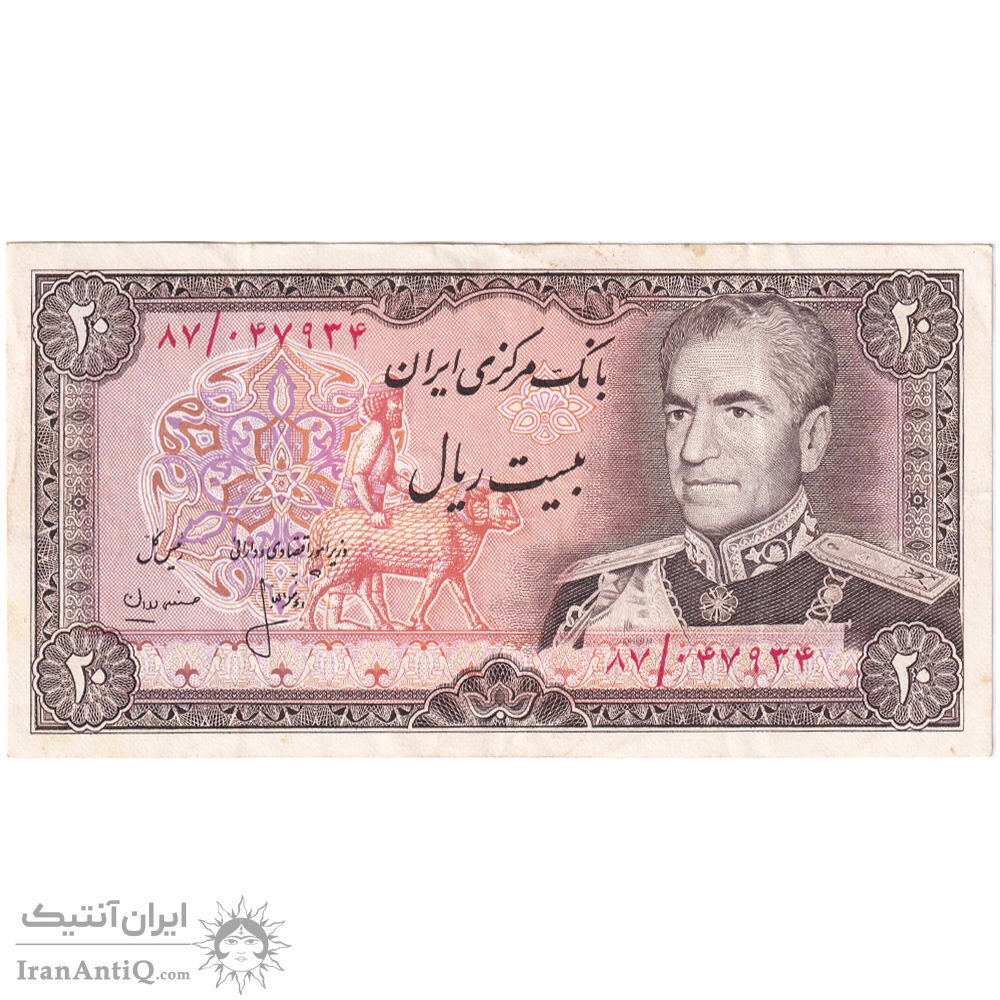 اسکناس 20 ریال (انصاری - مهران) ریال باز - تک - EF40 - محمد رضا شاه