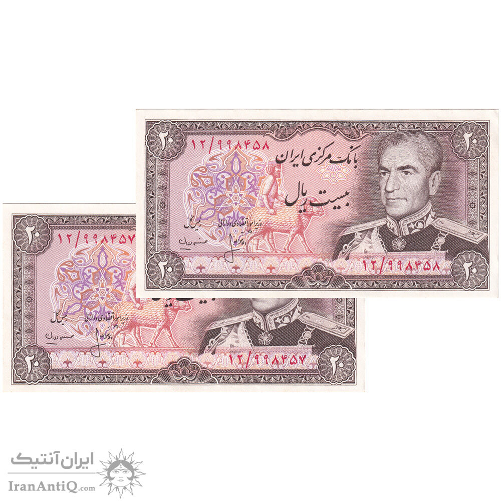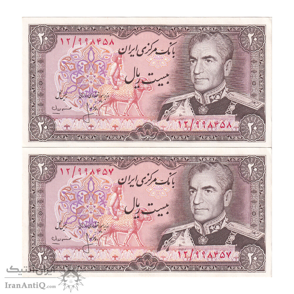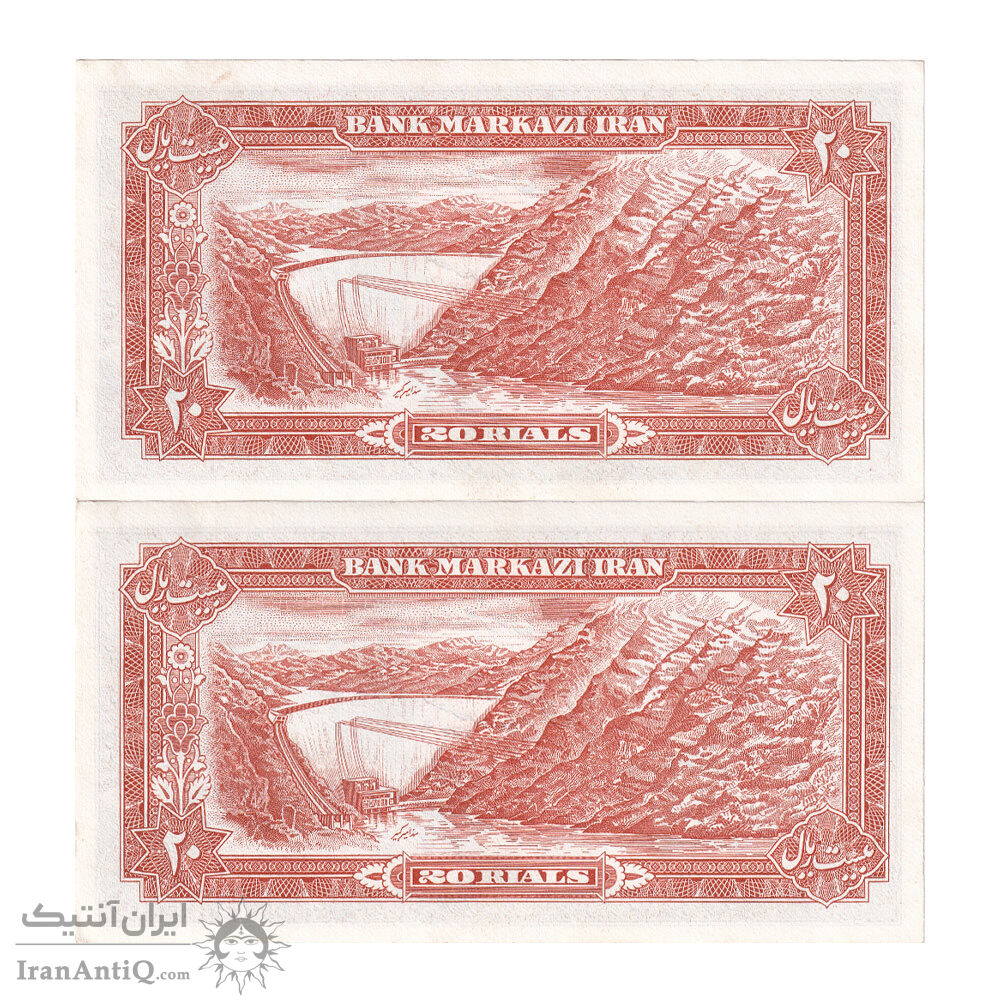 اسکناس 20 ریال (انصاری - مهران) ریال بسته - جفت - UNC61 - محمد رضا شاه