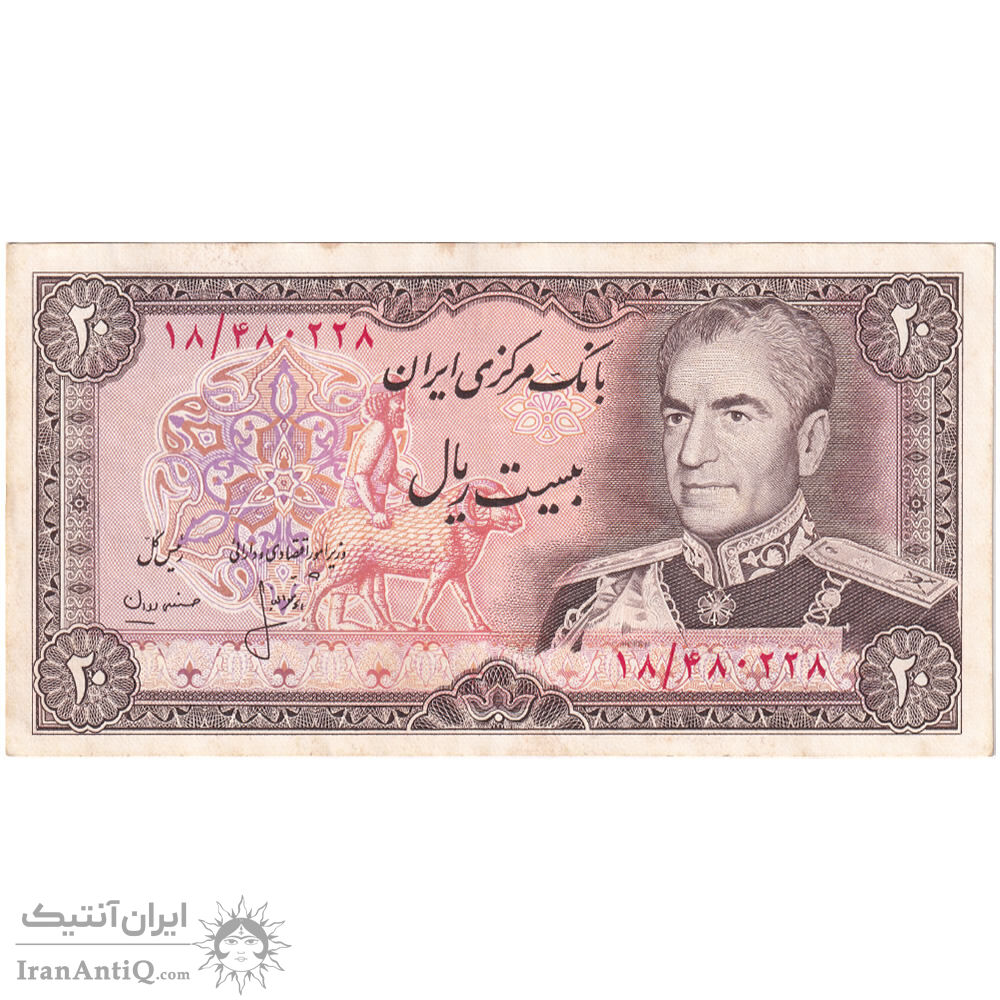 اسکناس 20 ریال (انصاری - مهران) ریال بسته - تک - AU50 - محمد رضا شاه