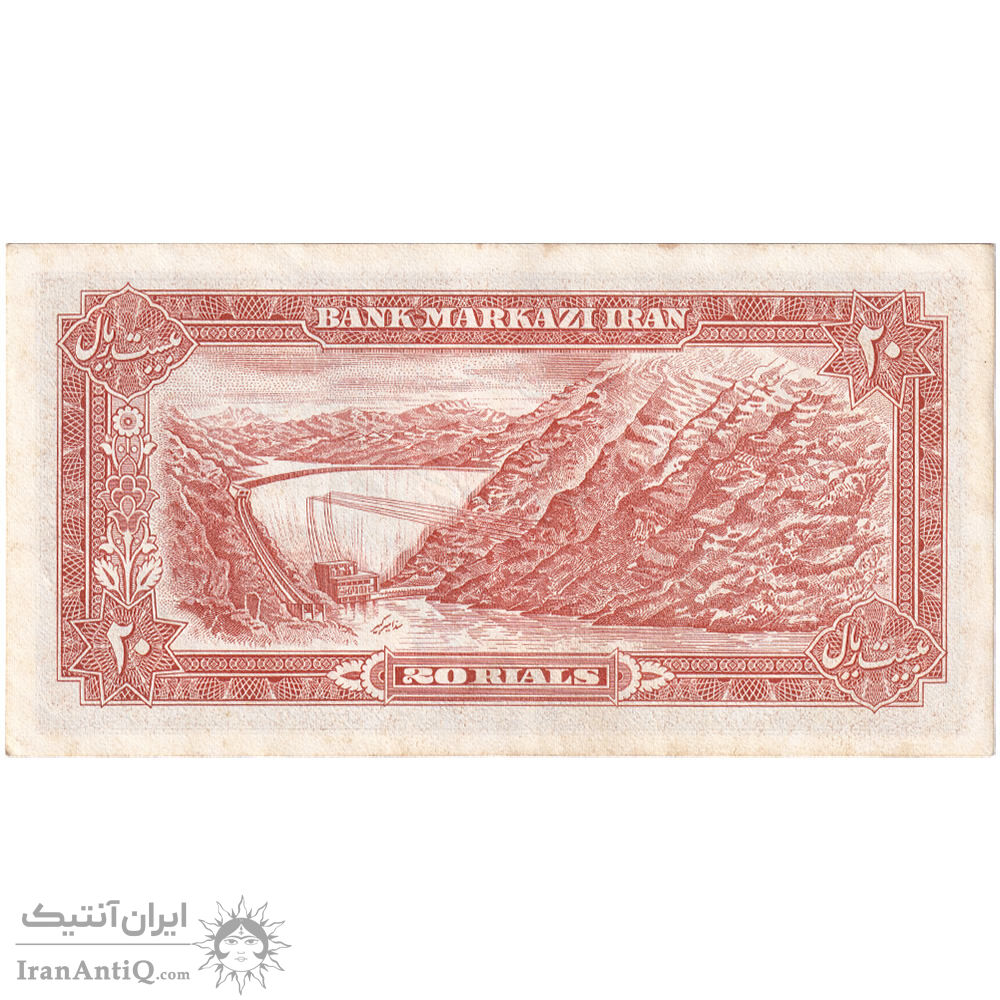 mohammad reza shah 20 rials (ansari - mehran) iran banknote - AU50