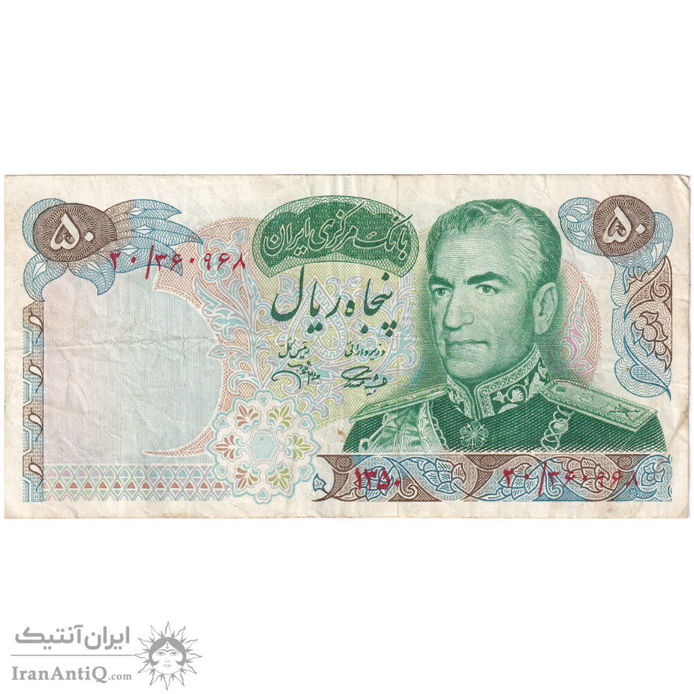 اسکناس 50 ریال 1350 (آموزگار - جهانشاهی) - تک - VF30 - محمد رضا شاه