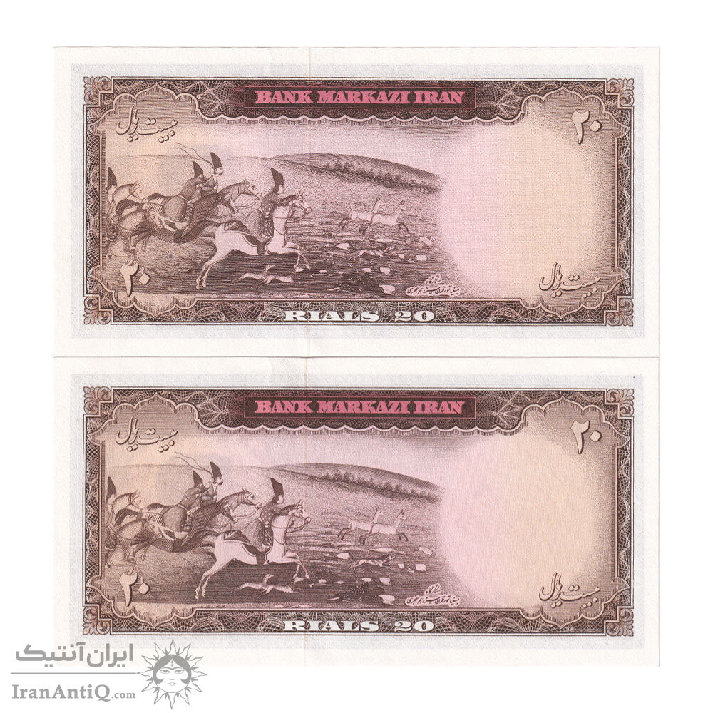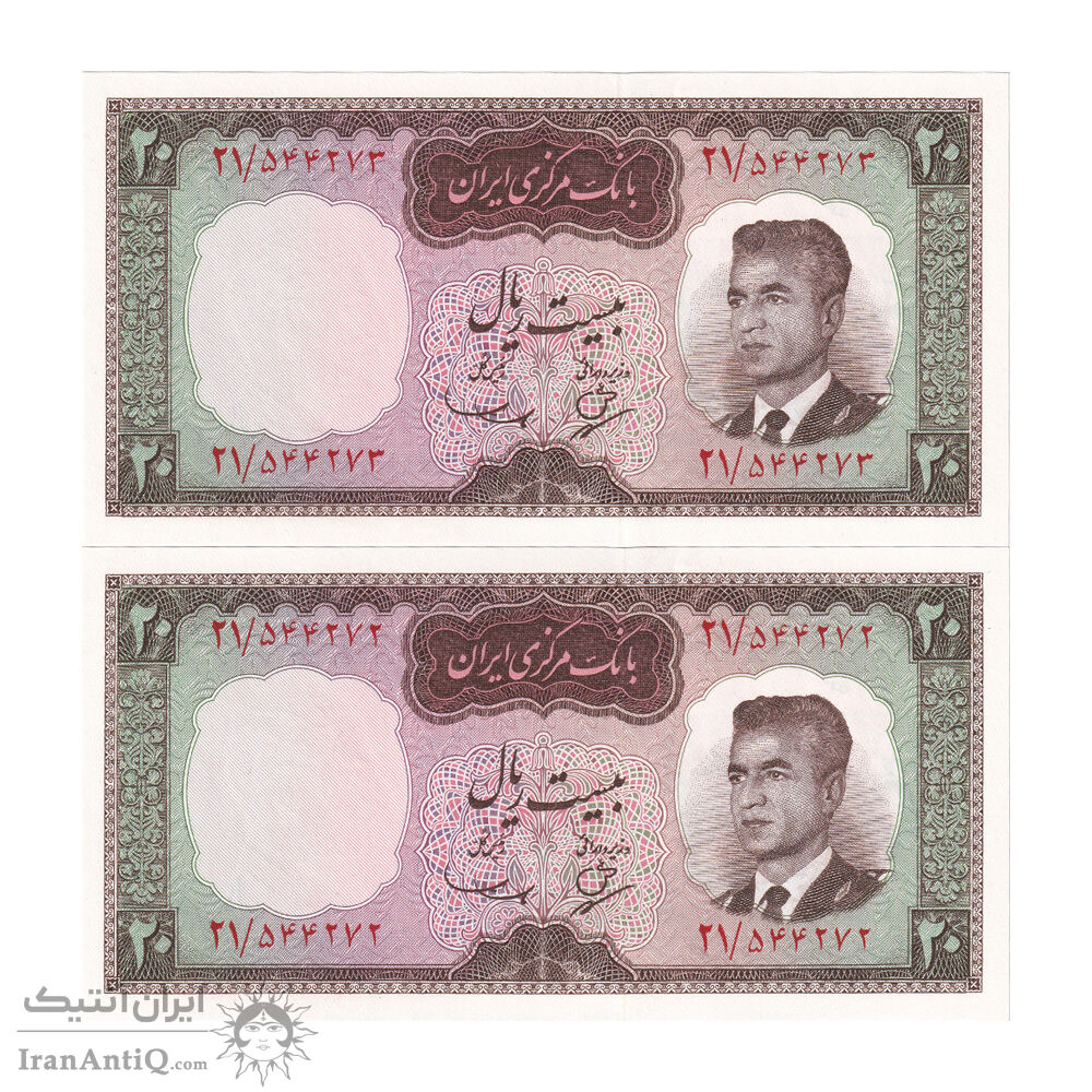 اسکناس 20 ریال (بهنیا - سمیعی) - جفت - UNC63 - محمد رضا شاه