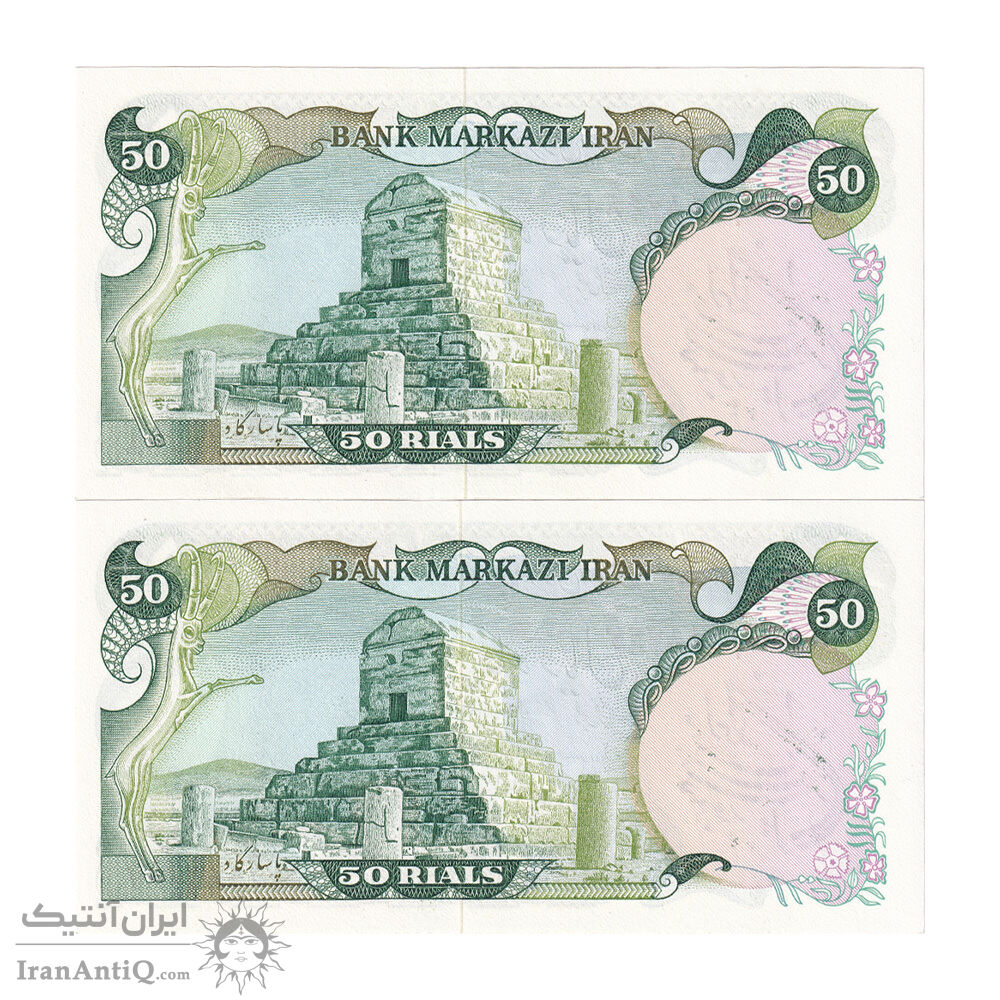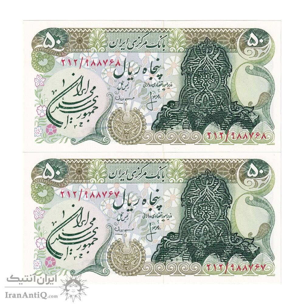 اسکناس 50 ریال سورشارژی (انصاری - مهران) مهر جمهوری - سورشارژ سبز - جفت - UNC64 - جمهوری اسلامی