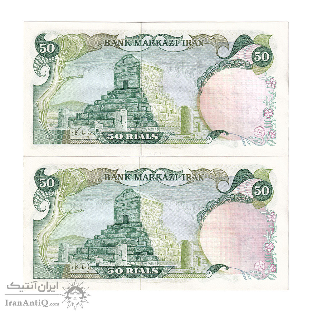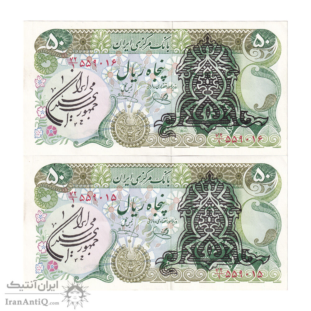 اسکناس 50 ریال سورشارژی (یگانه - خوش کیش) مهر جمهوری - جفت - AU53 - جمهوری اسلامی