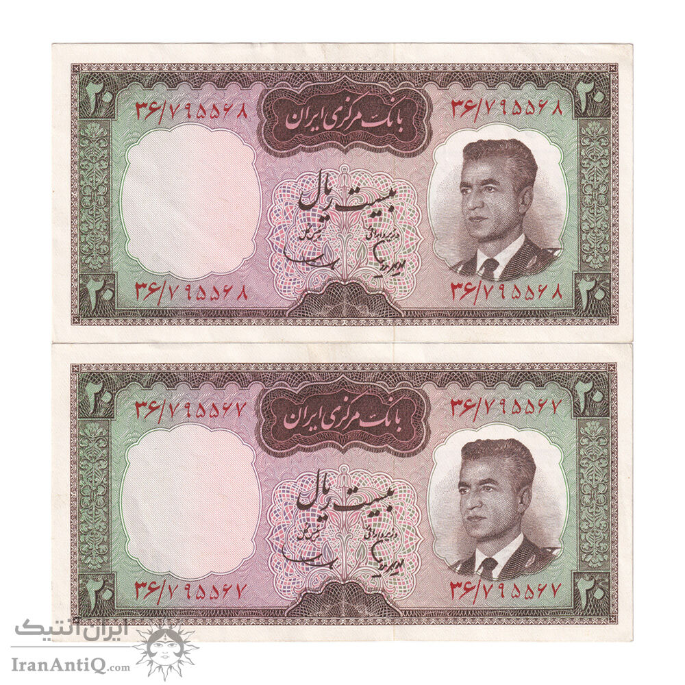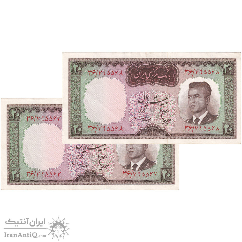 اسکناس 20 ریال (هویدا - سمیعی) - جفت - AU53 - محمد رضا شاه