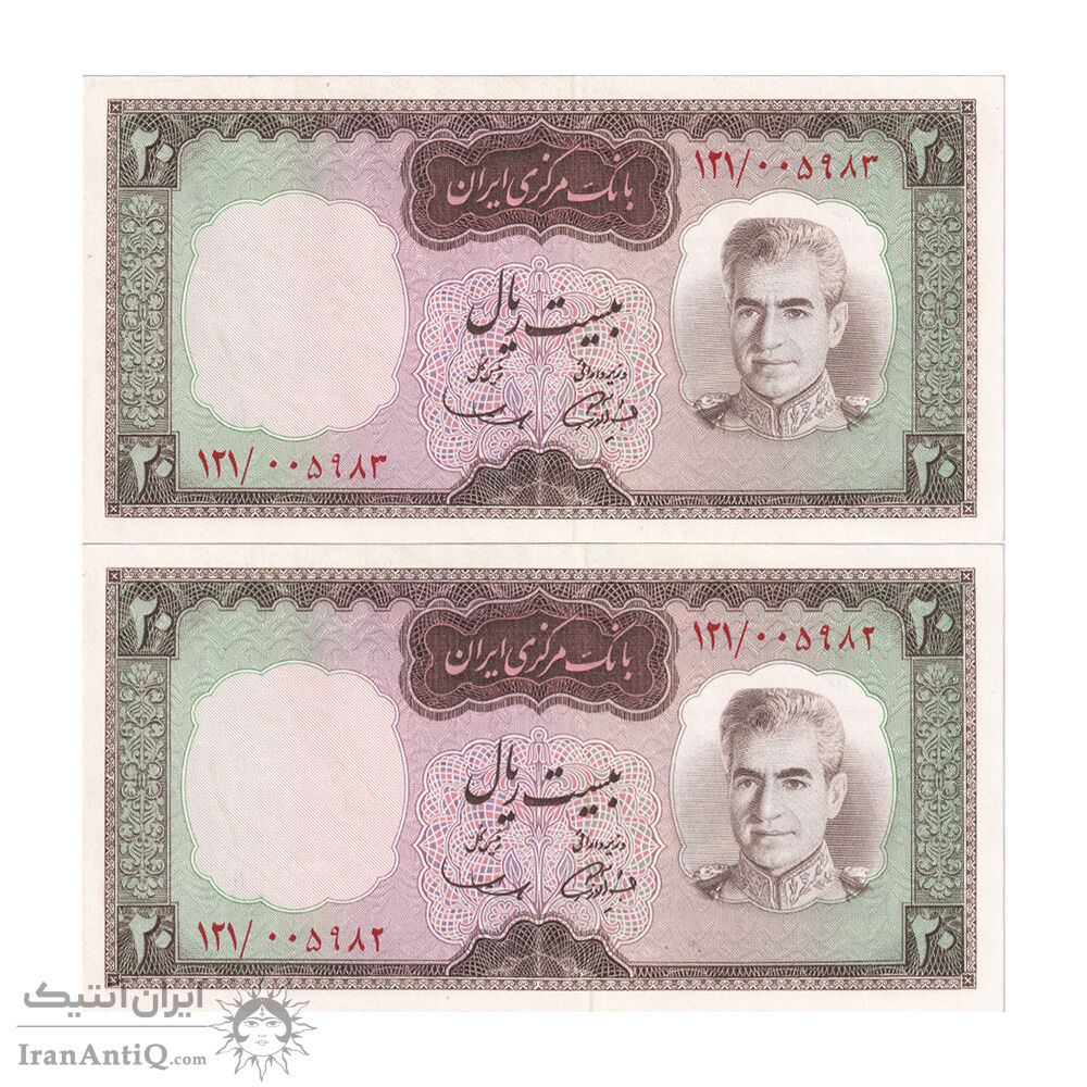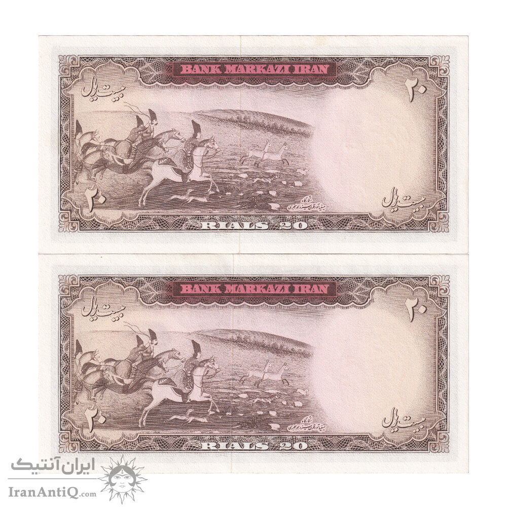اسکناس 20 ریال (آموزگار - سمیعی) - جفت - UNC62 - محمد رضا شاه