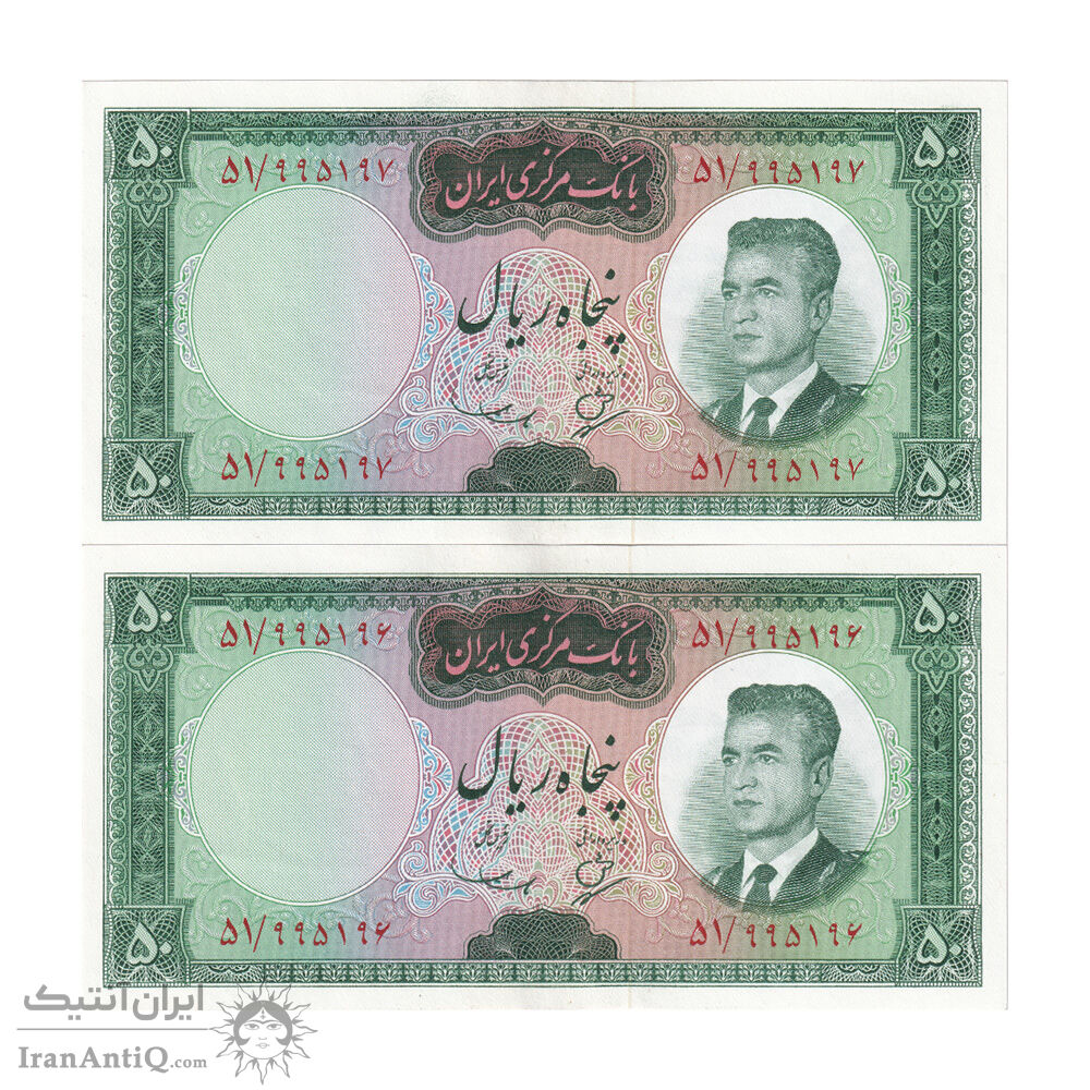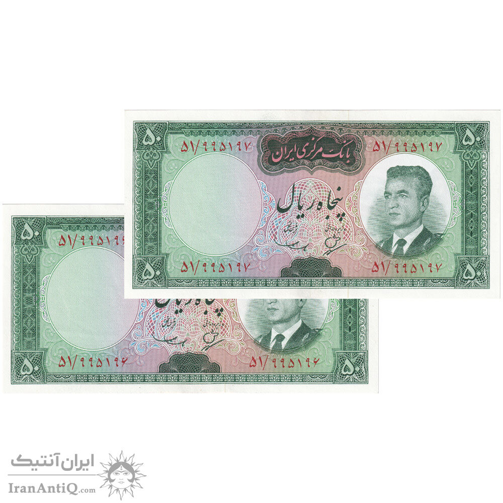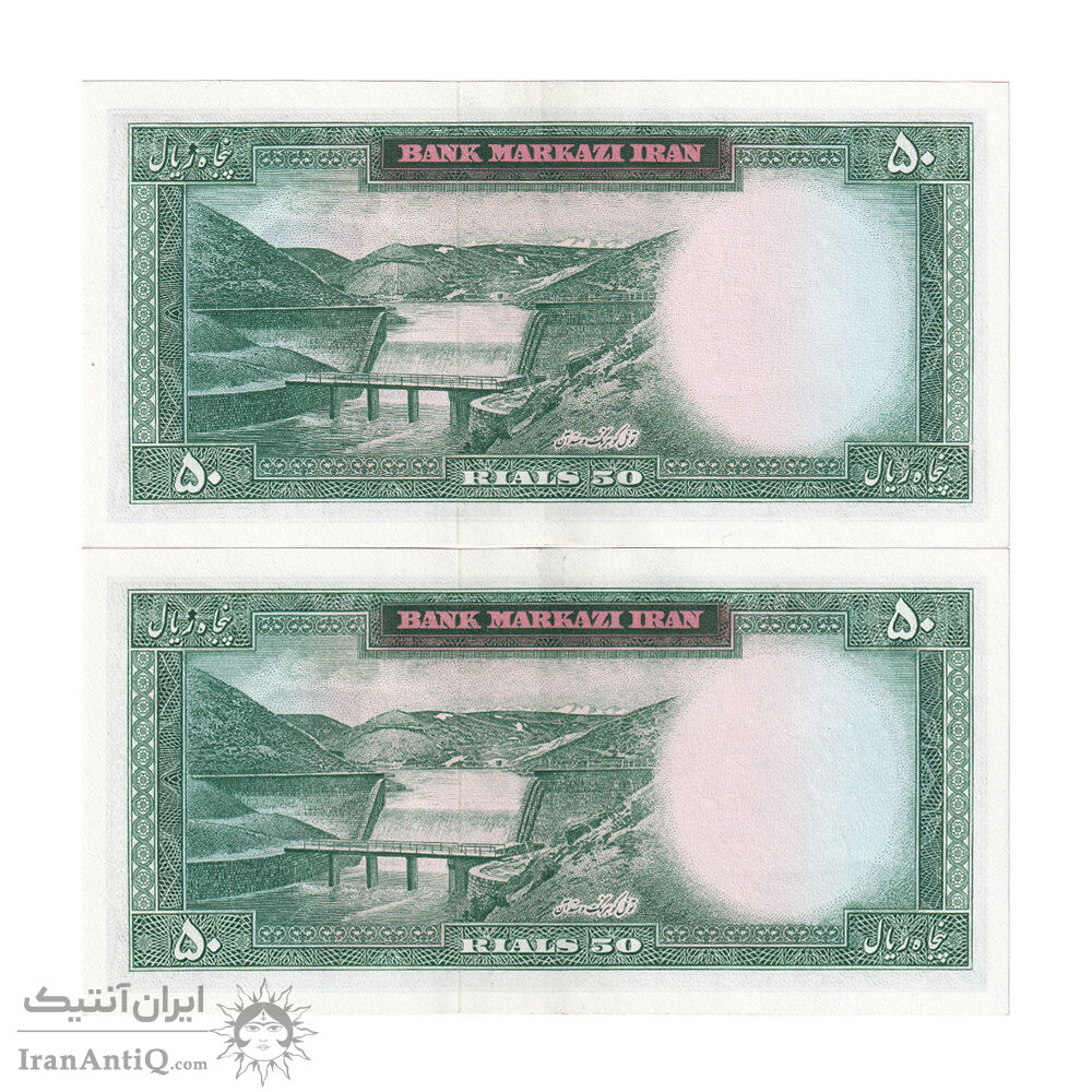 اسکناس 50 ریال (بهنیا - سمیعی) - جفت - UNC63 - محمد رضا شاه